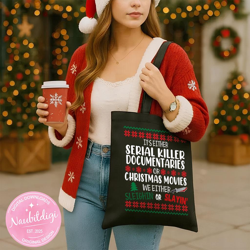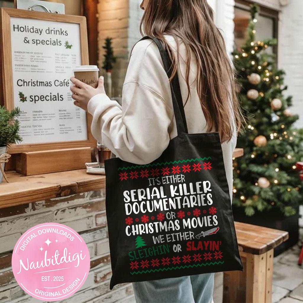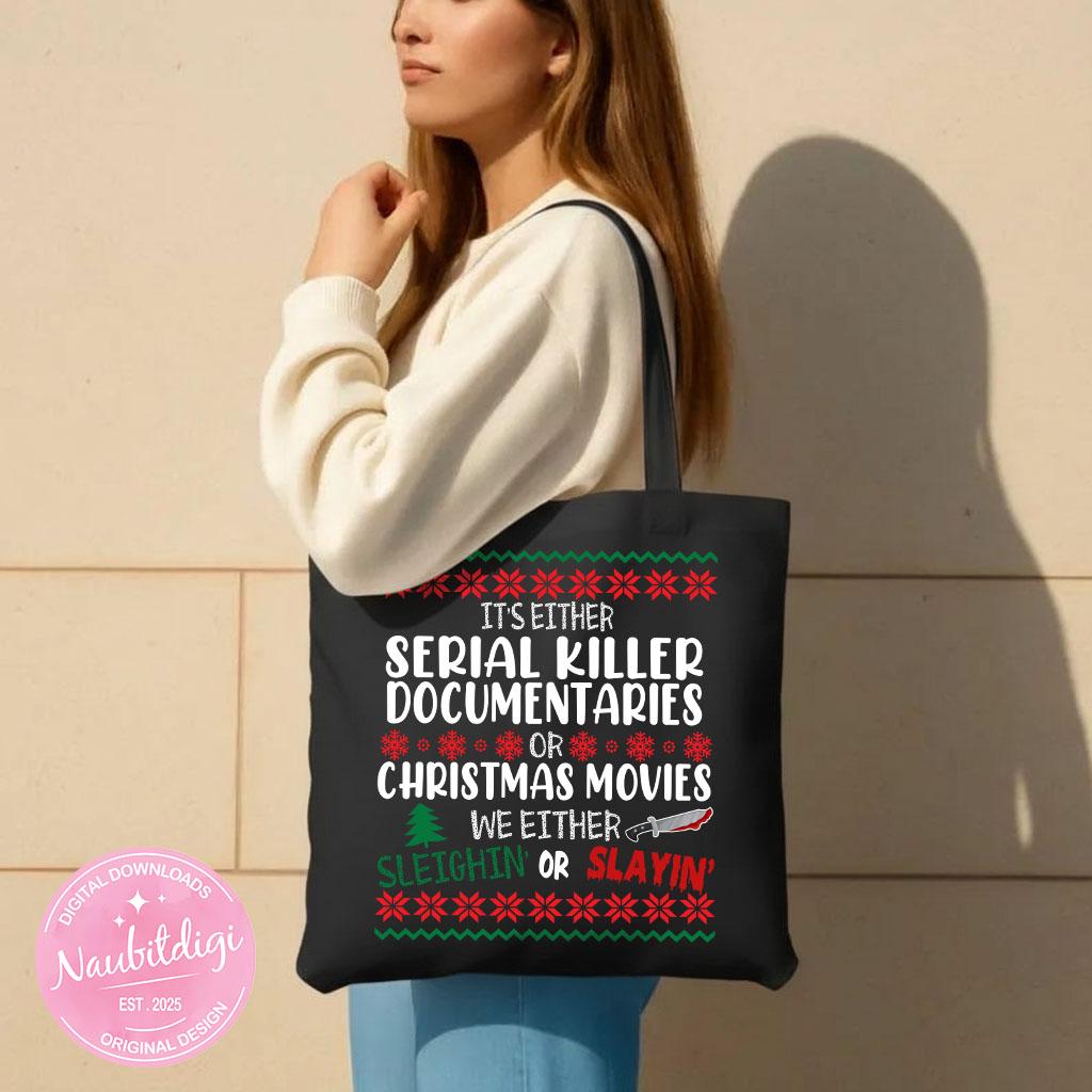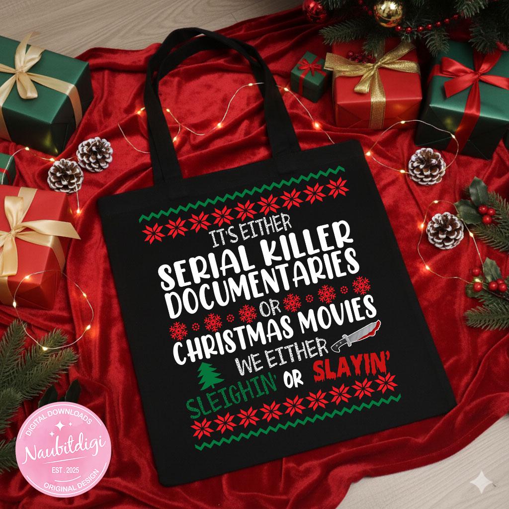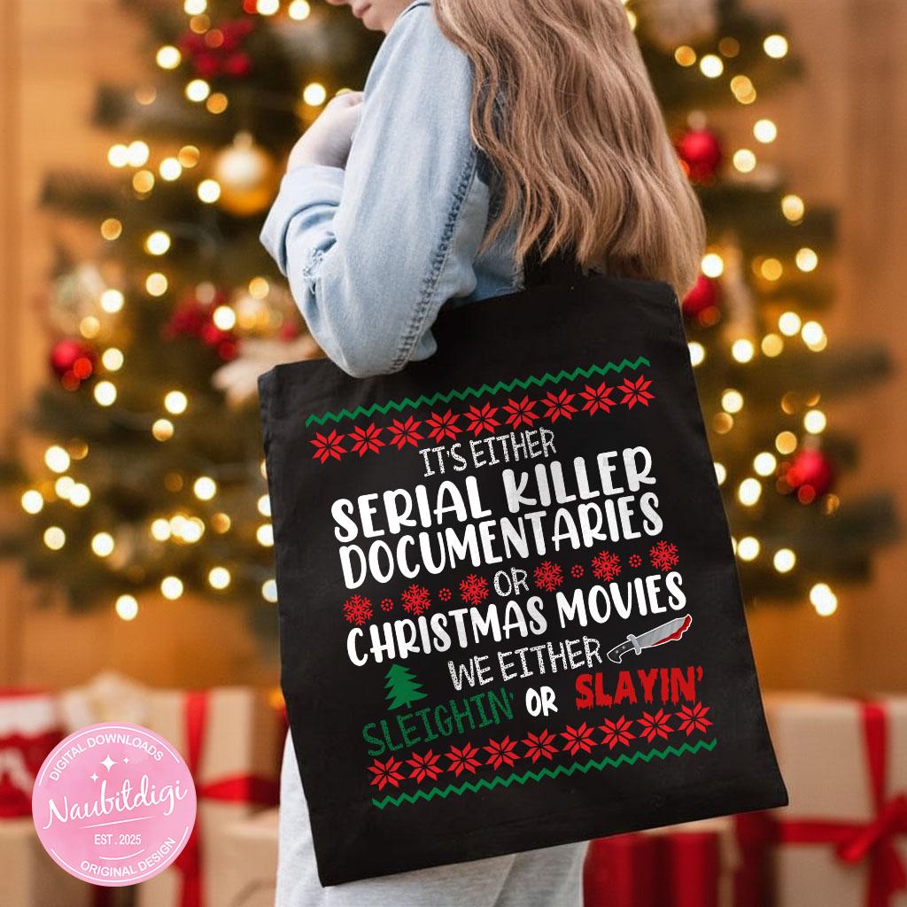 It's Either Serial Killer Documentaries Or Christmas Movies Png, Christmas Quotes Png, Merry Christmas Png, Tote bag design png