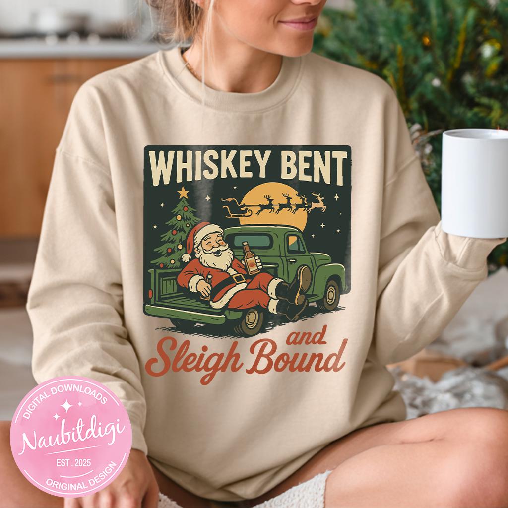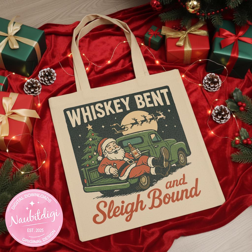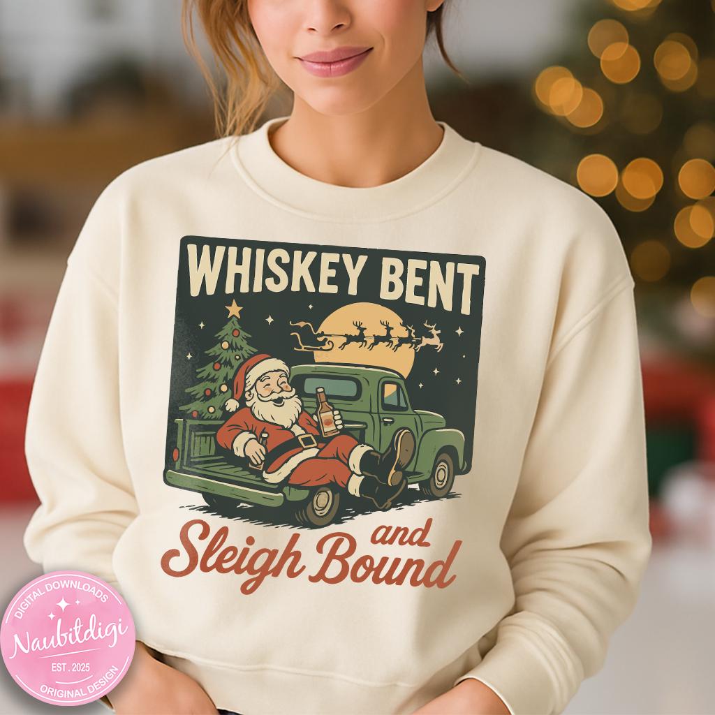 Celebrate the holidays with a touch of humor using this “Whiskey Bent and Sleigh Bound” PNG clipart! This festive design features a playful Christmas-themed quote, perfect for mugs, t-shirts, holiday party decor, or cozy winter gifts.