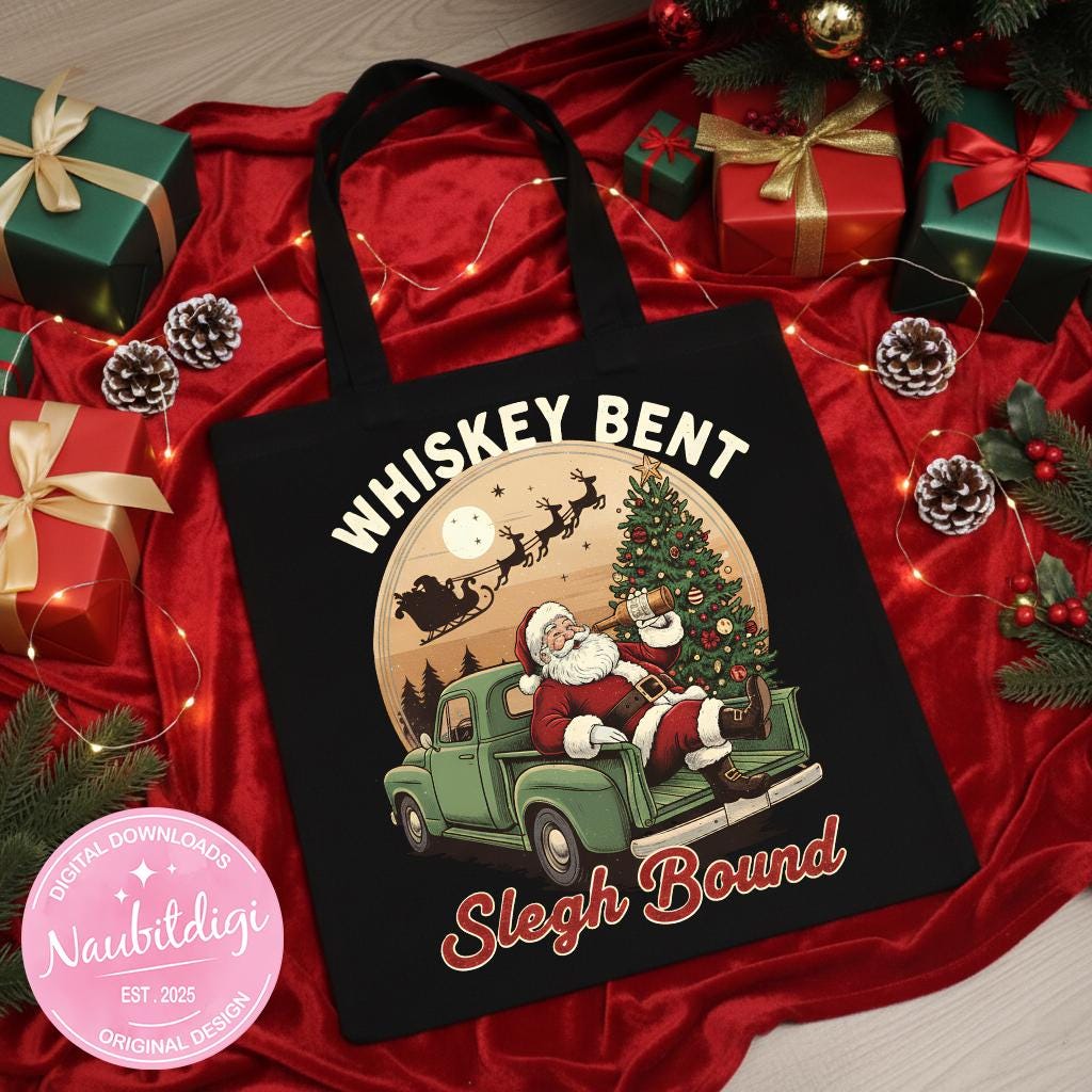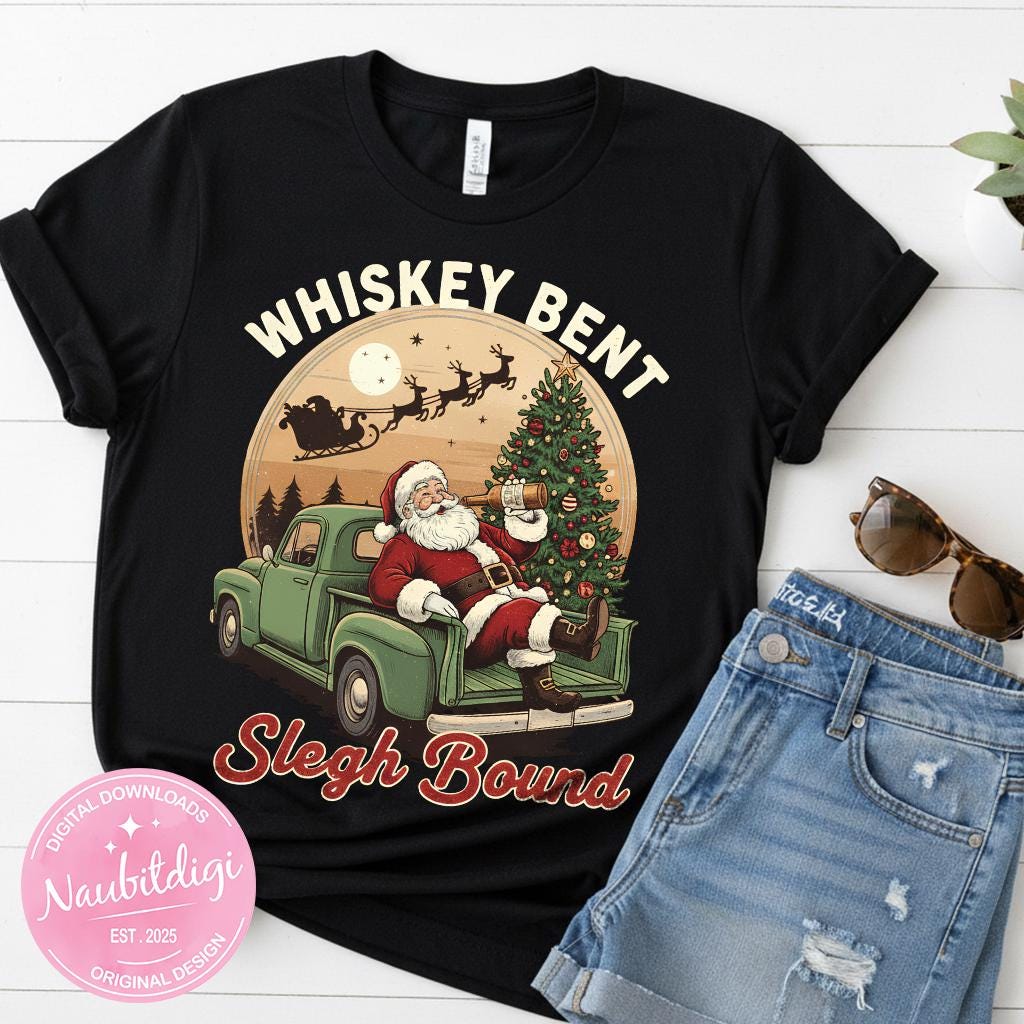 Whiskey Bent Sleigh Bound PNG, Funny Christmas Clipart (Digital Download)