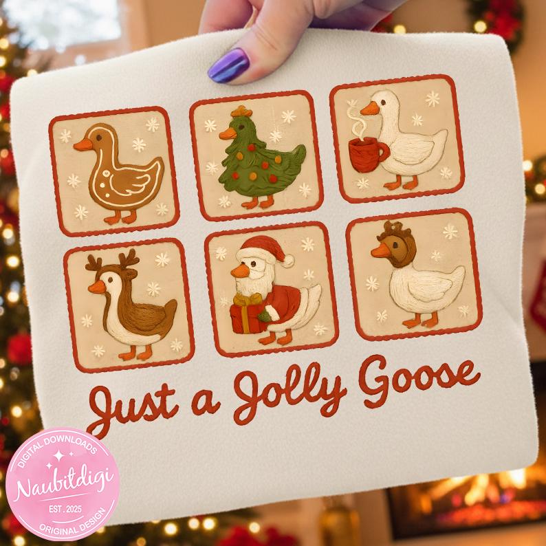 Get festive and humorous vibes with this “Just A Jolly Goose” PNG — a fun, holiday-themed clipart featuring a cheerful goose perfect for Christmas shirts, mugs, holiday décor, and gifts. The playful design brings a quirky and cozy twist to your festive projects, ideal for anyone who loves holiday humor mixed with Christmas charm.