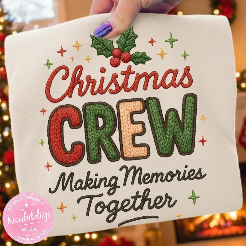 Celebrate the holidays with this cozy “Faux Yarn Christmas Crew 2025” PNG — a warm, rustic-style clipart perfect for family matching shirts, holiday sweaters, mugs, home décor, or festive gifts. The faux-yarn texture adds a handmade, cabin-style vibe — ideal for cozy, seasonal creations that stand out.