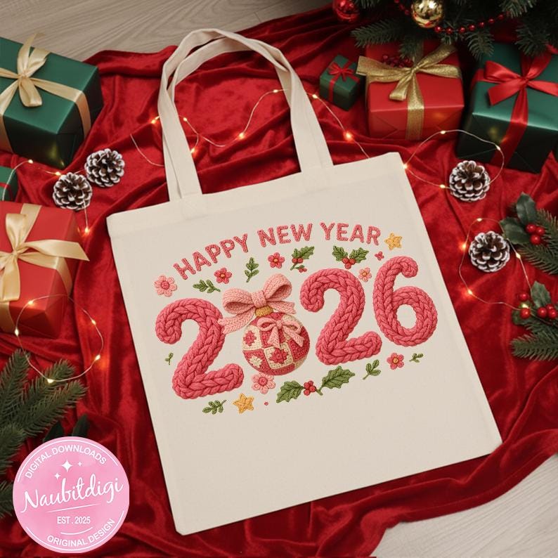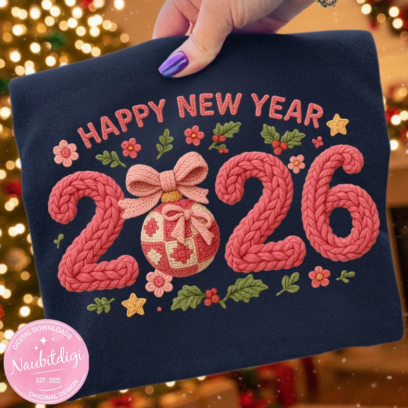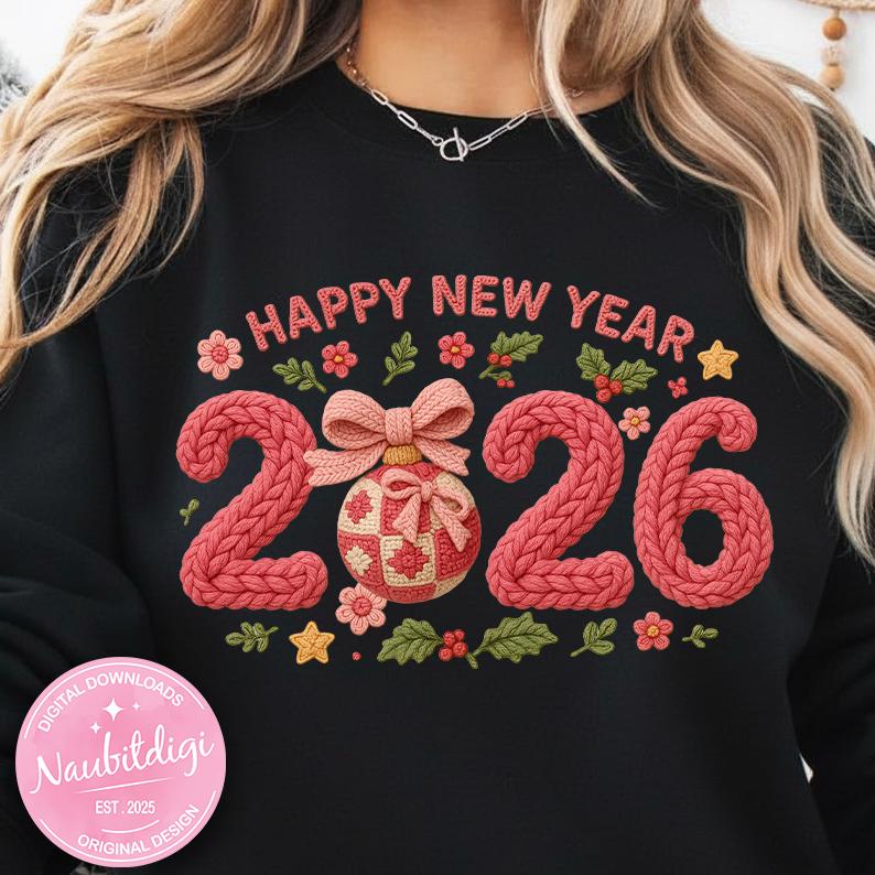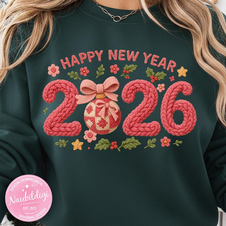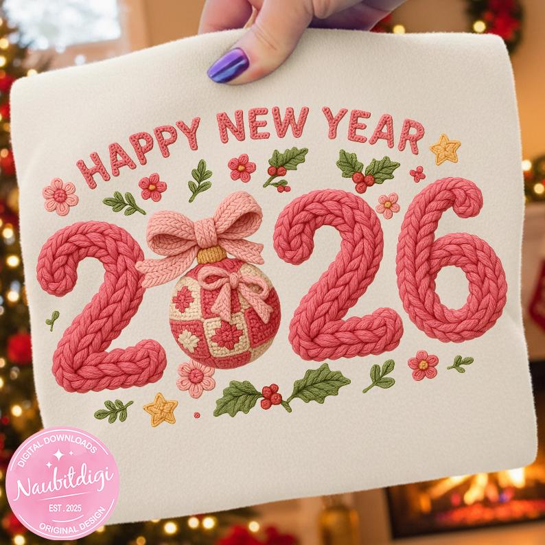 Happy New Year 2026 PNG, Crochet Christmas Design (Digital Download)