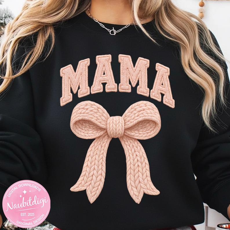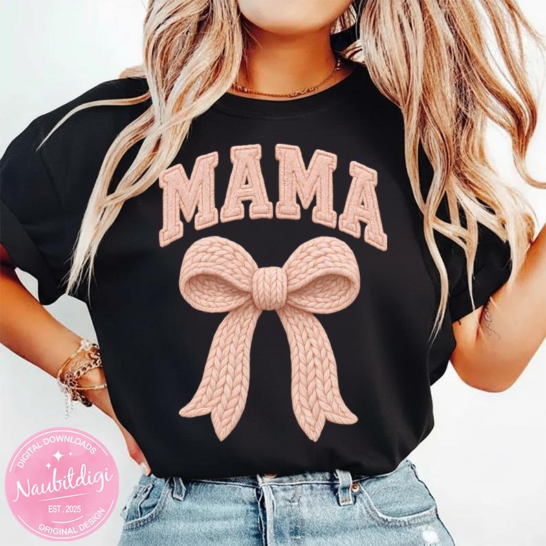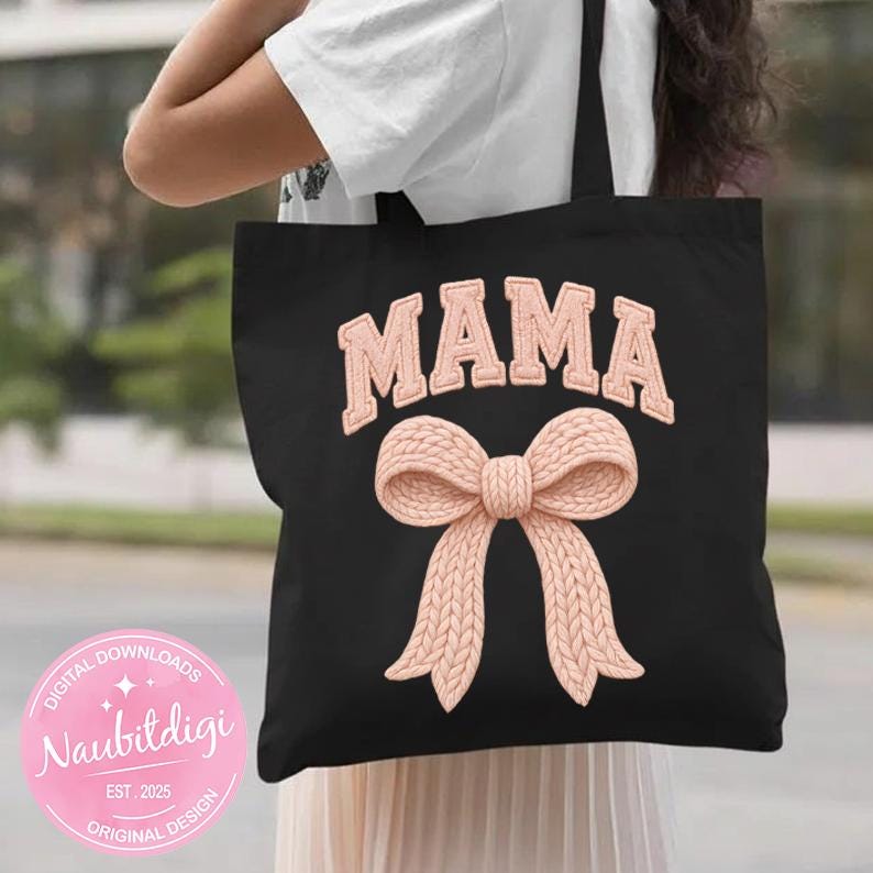 Coquette Mama PNG, Knitted Bow, Tufted Design (Digital Download)