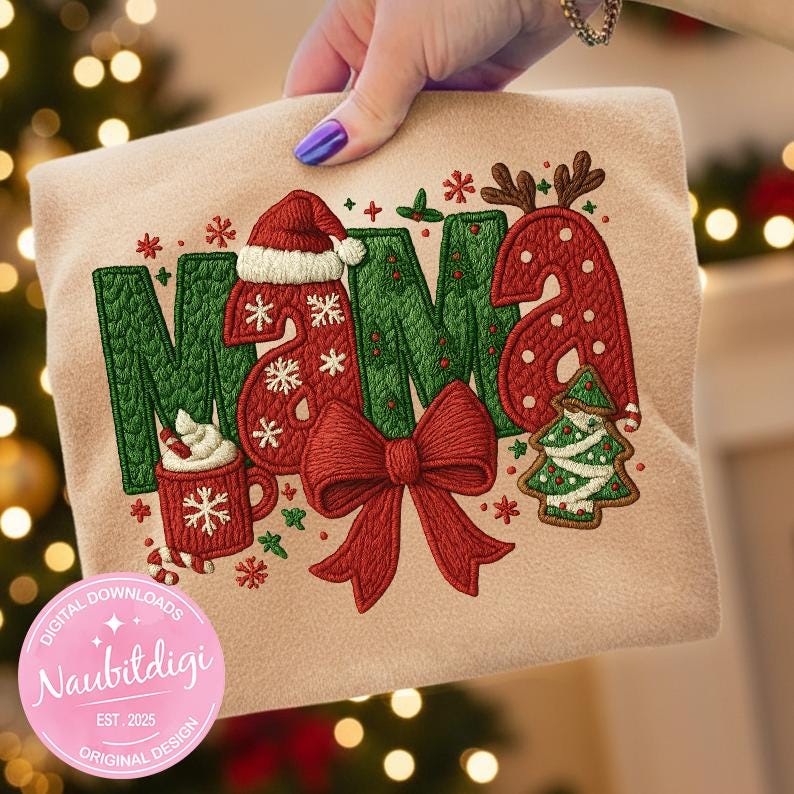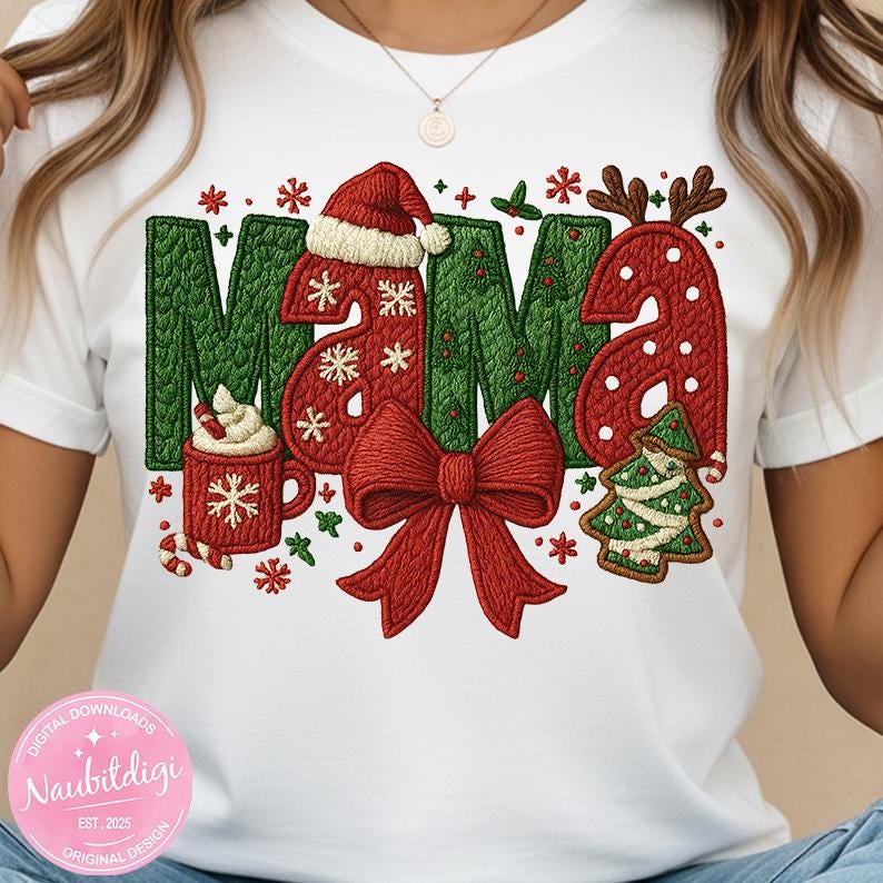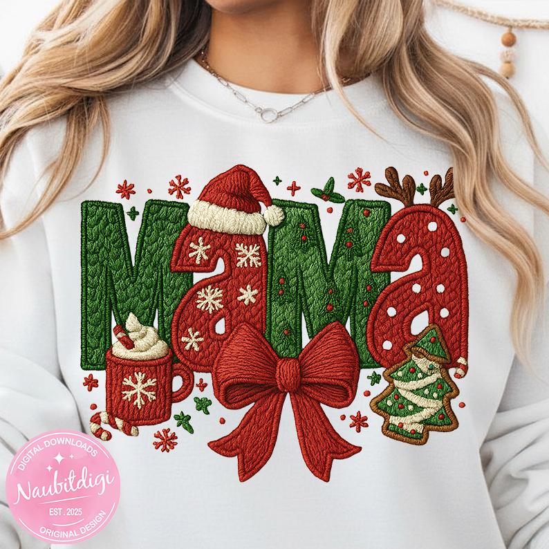 Faux Yarn Christmas Mama PNG, Mom Holiday Clipart, Cozy Xmas Sublimation Design, Instant Download