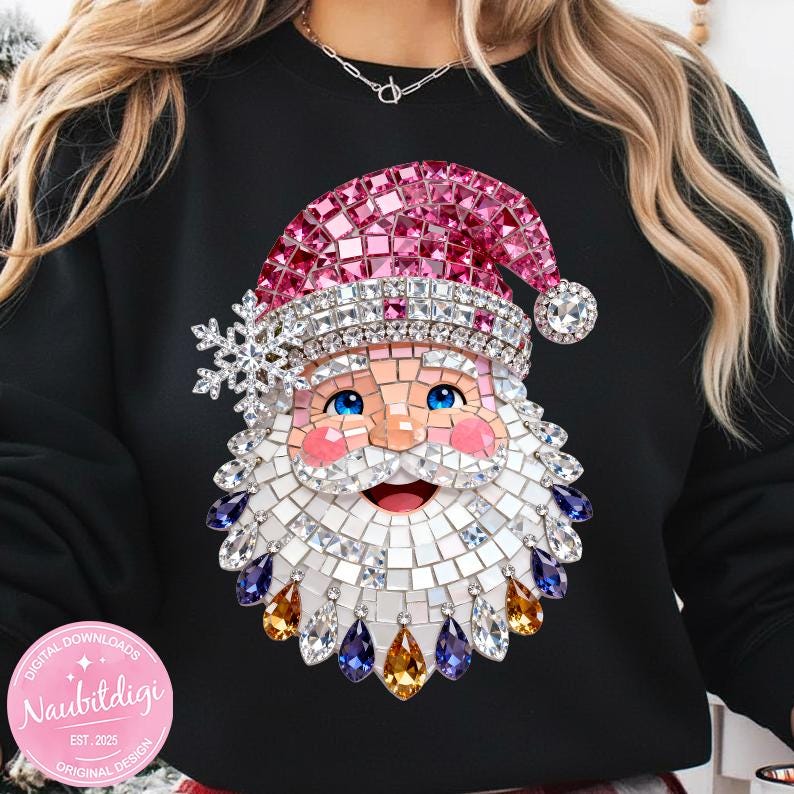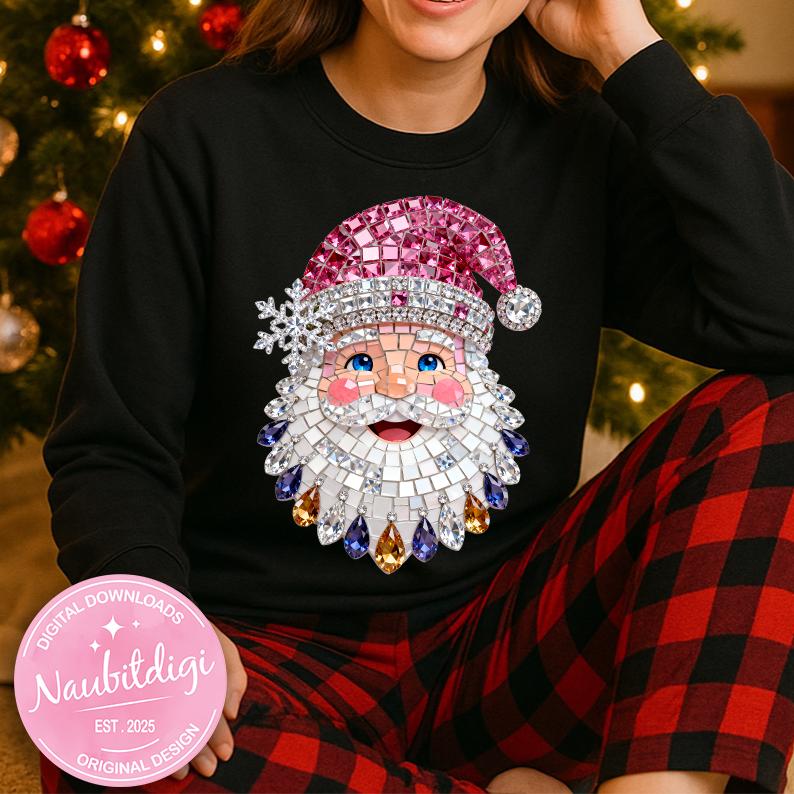 rhinestone santa png • bling christmas png • sparkling santa png • santa sublimation file • christmas png digital download • holiday shirt png