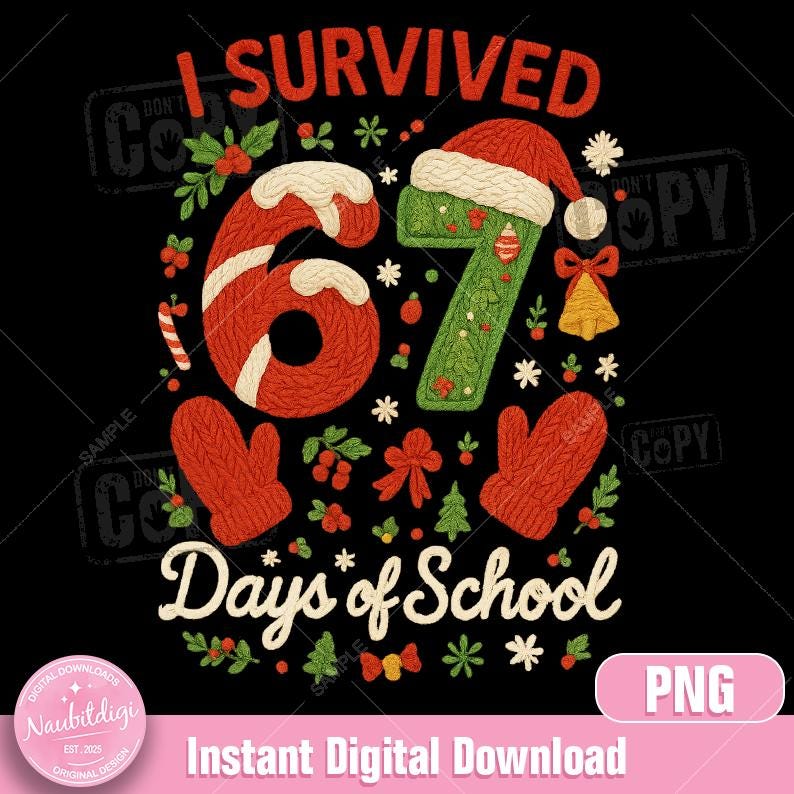 I Survived 67 Days of School PNG: Funny Teacher Christmas (Digital Download)