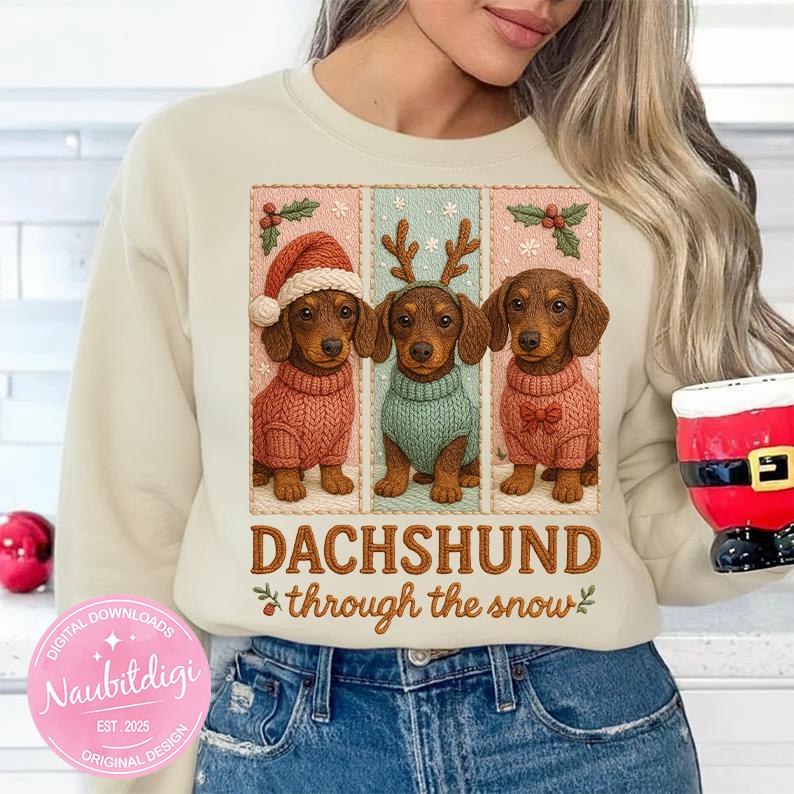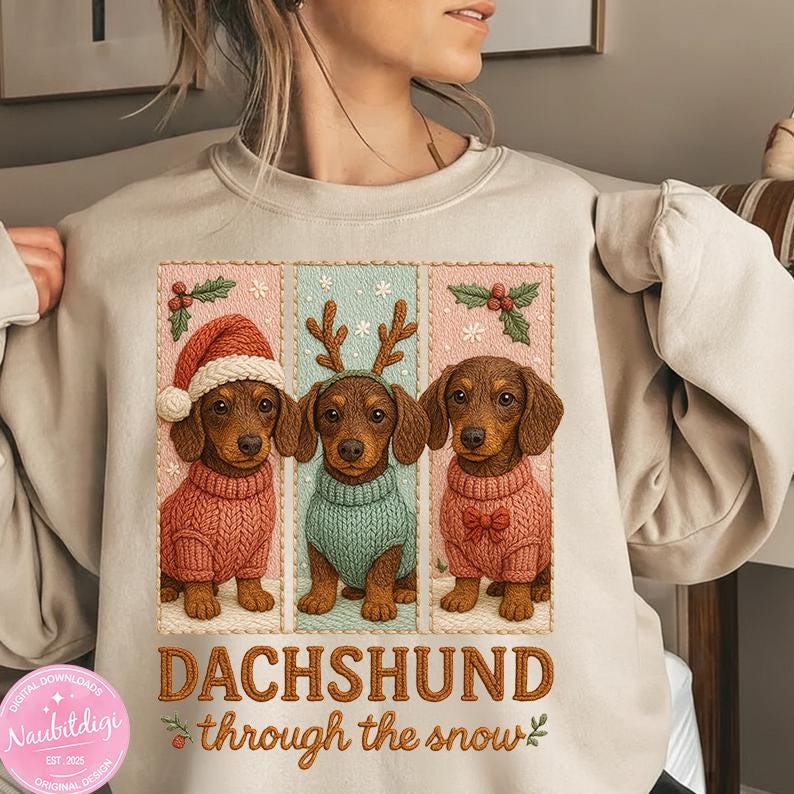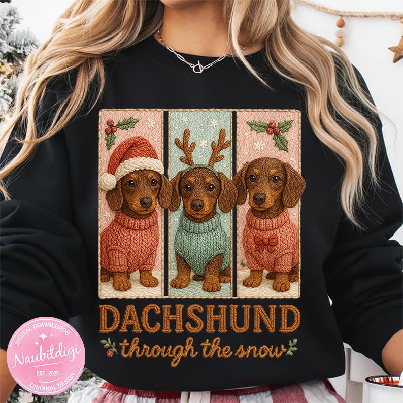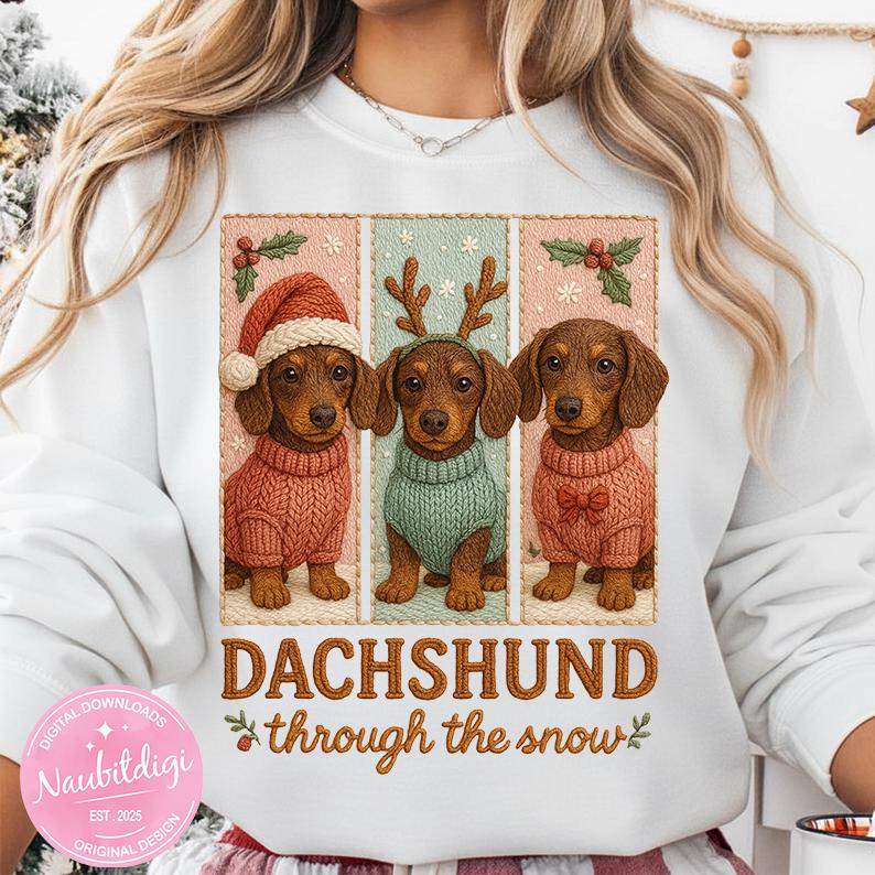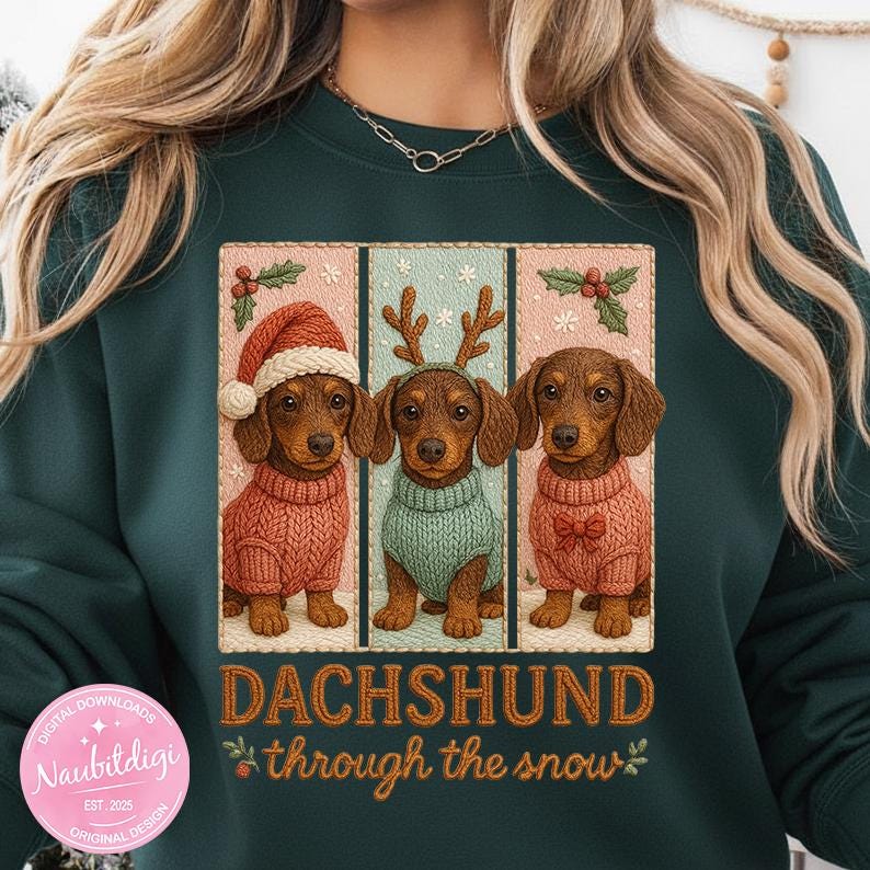 Celebrate the festive season in the cutest way with this Faux Embroidery Dachshund Through The Snow PNG! 🐾❄️