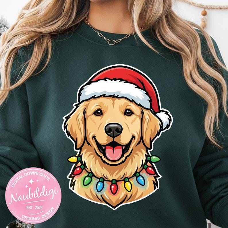 🎄 Spread holiday cheer with this adorable Golden Retriever Christmas PNG — perfect for pet lovers, holiday crafters, and festive DIY projects! This high-resolution PNG (transparent background, 300 DPI) is ideal for shirts, mugs, ornaments, tumblers, cards, stickers, and more.