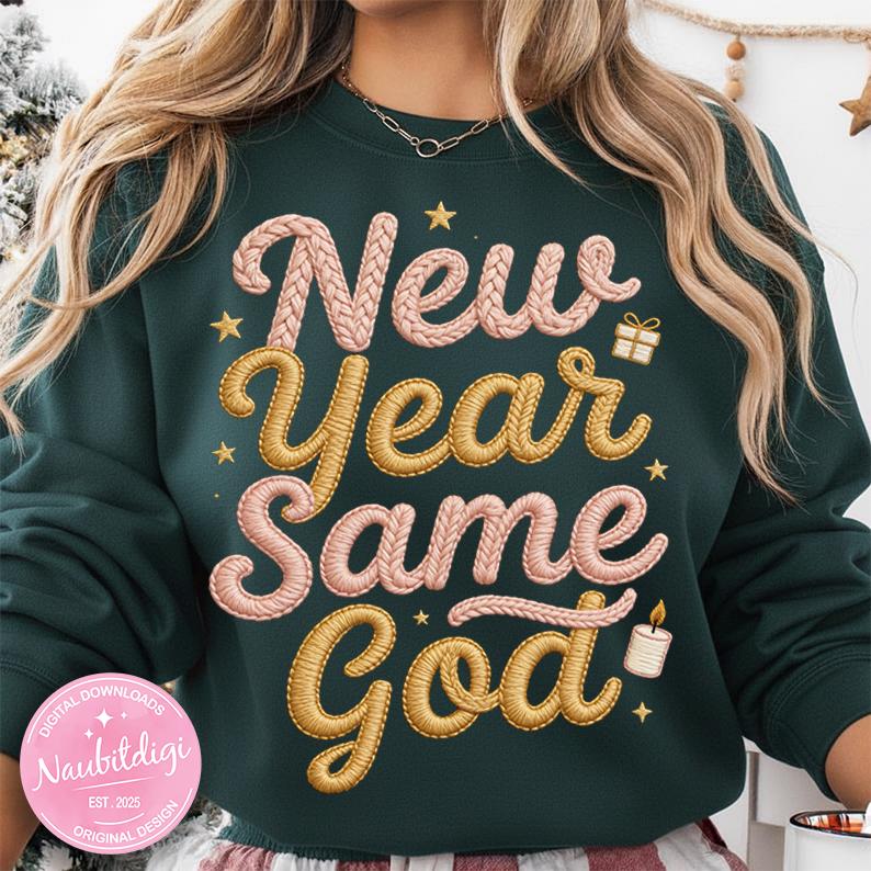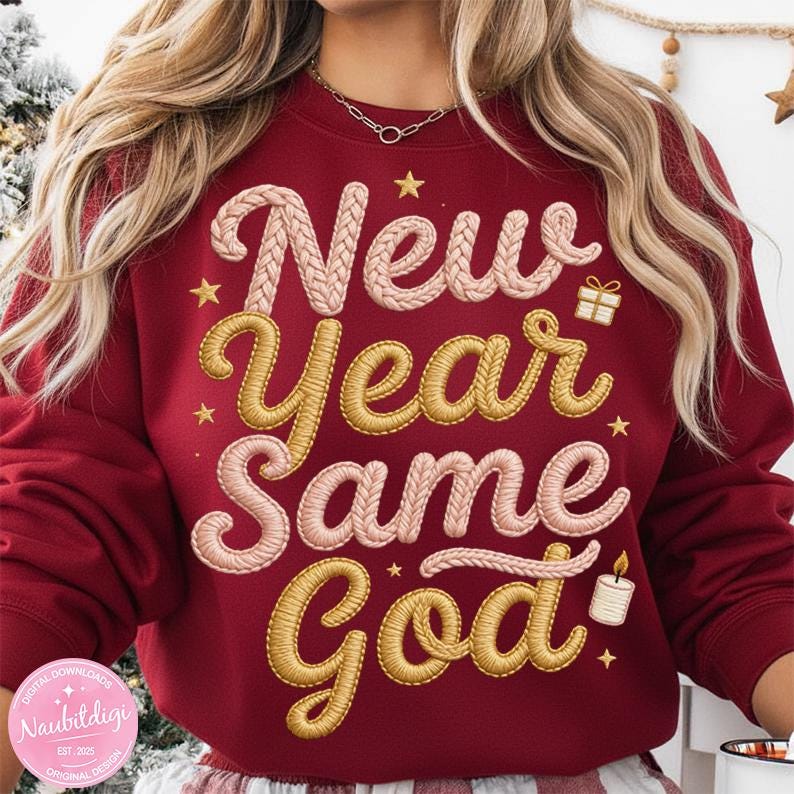 Perfect for celebrating the new year while boldly expressing faith. The textured illustration gives the look of soft yarn thread, creating a warm, charming aesthetic that stands out beautifully on apparel and gifts.