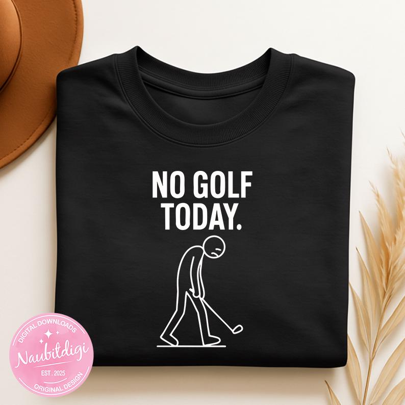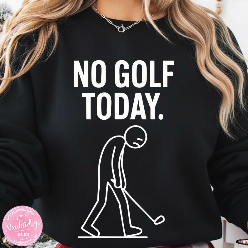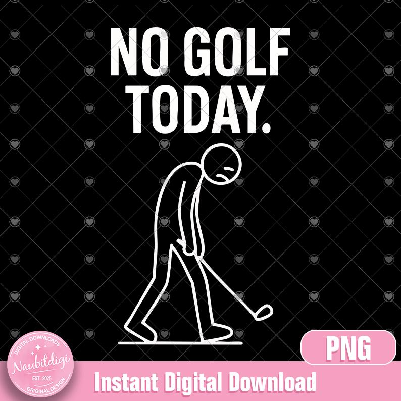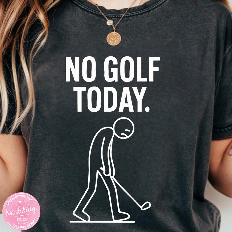 “No Golf Today”, humorously capturing the frustration of rain days, closed courses, or missed tee times.