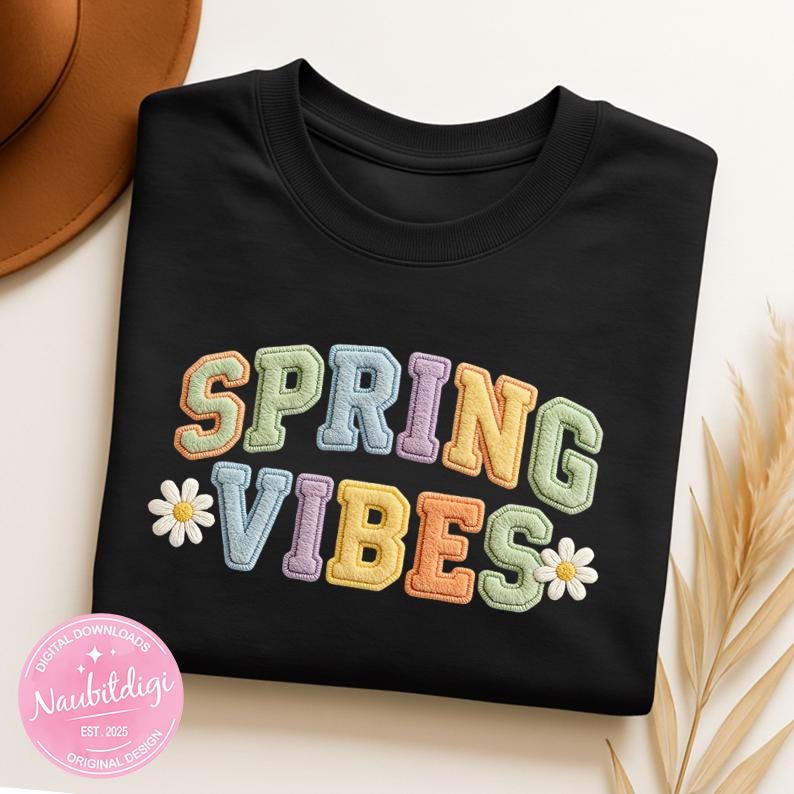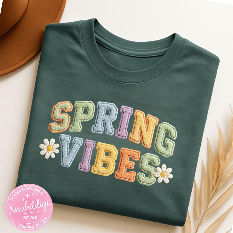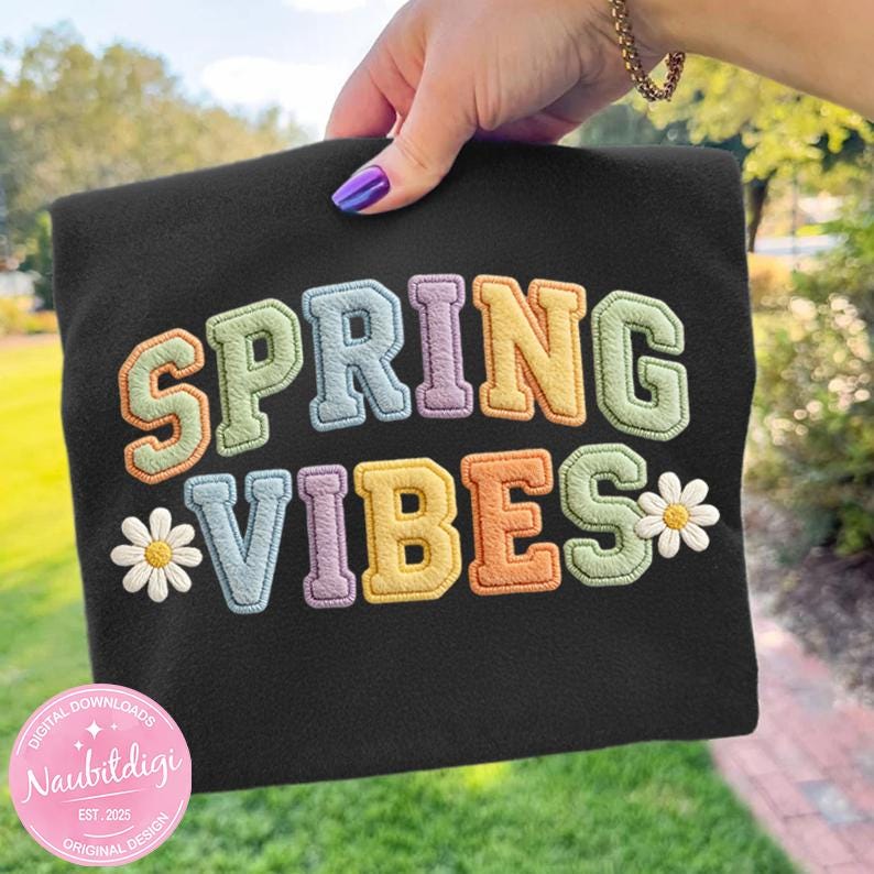 Bring fresh cheer to your spring creations with this Spring Vibes PNG, featuring pastel retro letters and charming daisies for a bright, uplifting look. Perfect for springtime tees, sweatshirts, crafts, and designs for floral lovers. This high-resolution artwork adds a soft, nostalgic, boutique-quality vibe to all your sublimation and POD projects.
