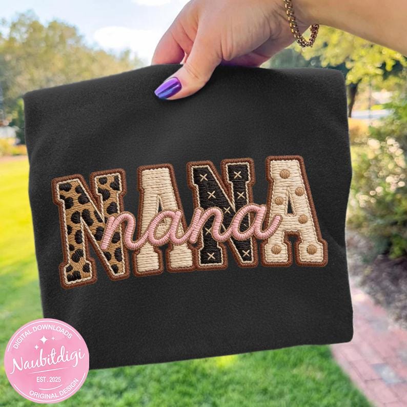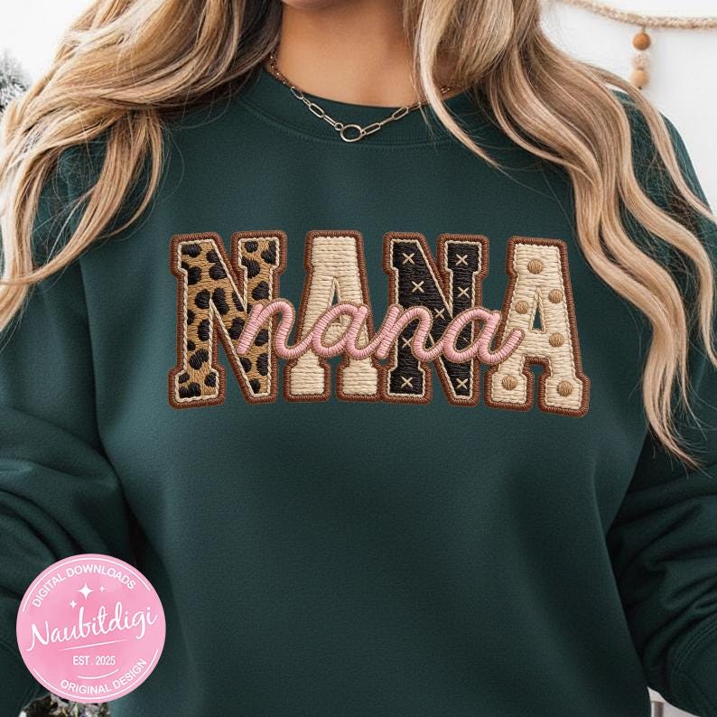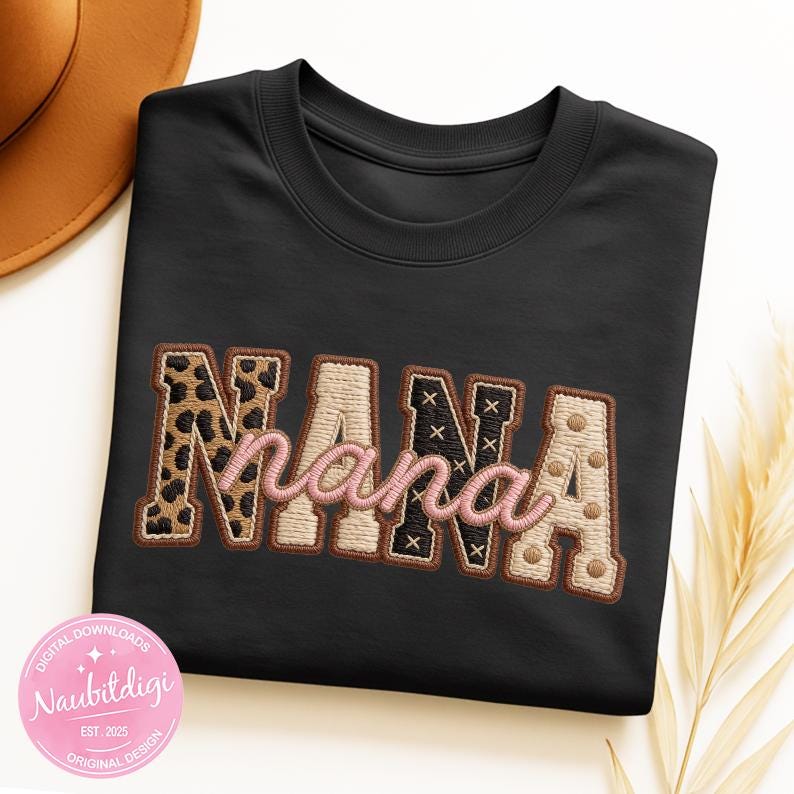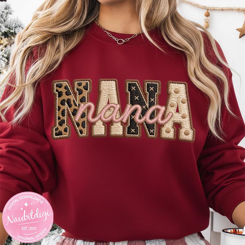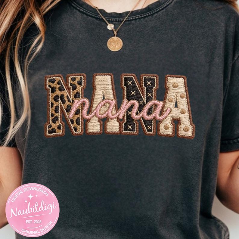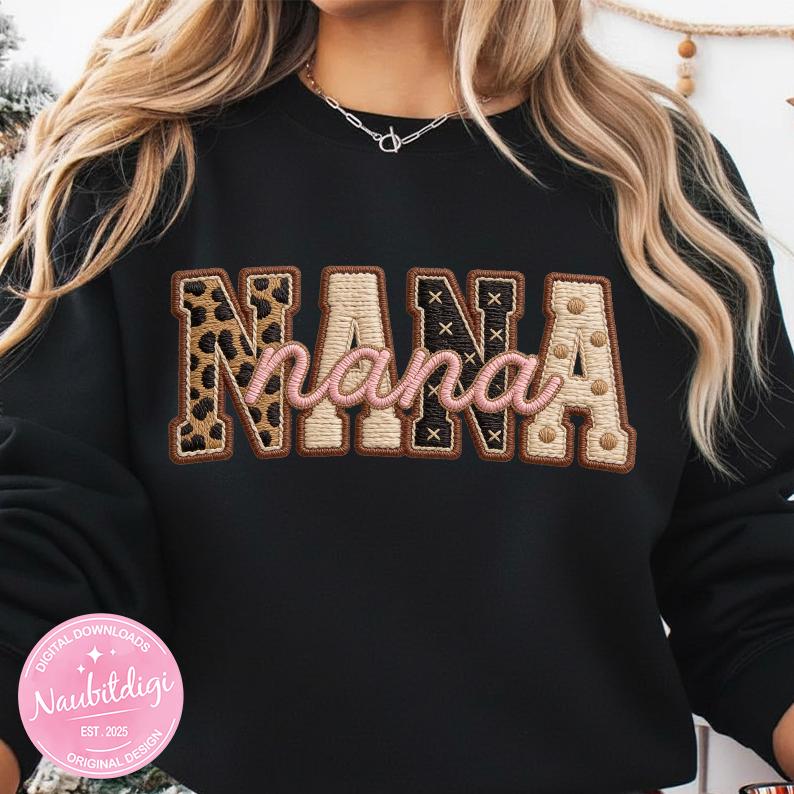 Celebrate Nana with a neutral leopard accents and retro script in a high-resolution transparent PNG. Perfect for sublimation, DTF, or crafting a sweet Mother’s Day or everyday grandma gift design.