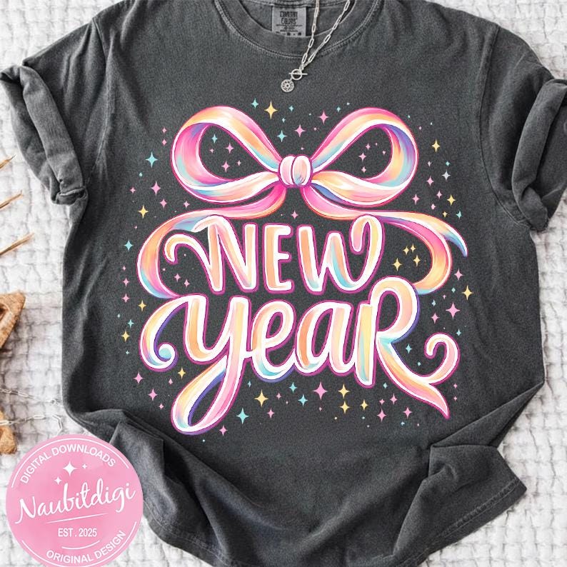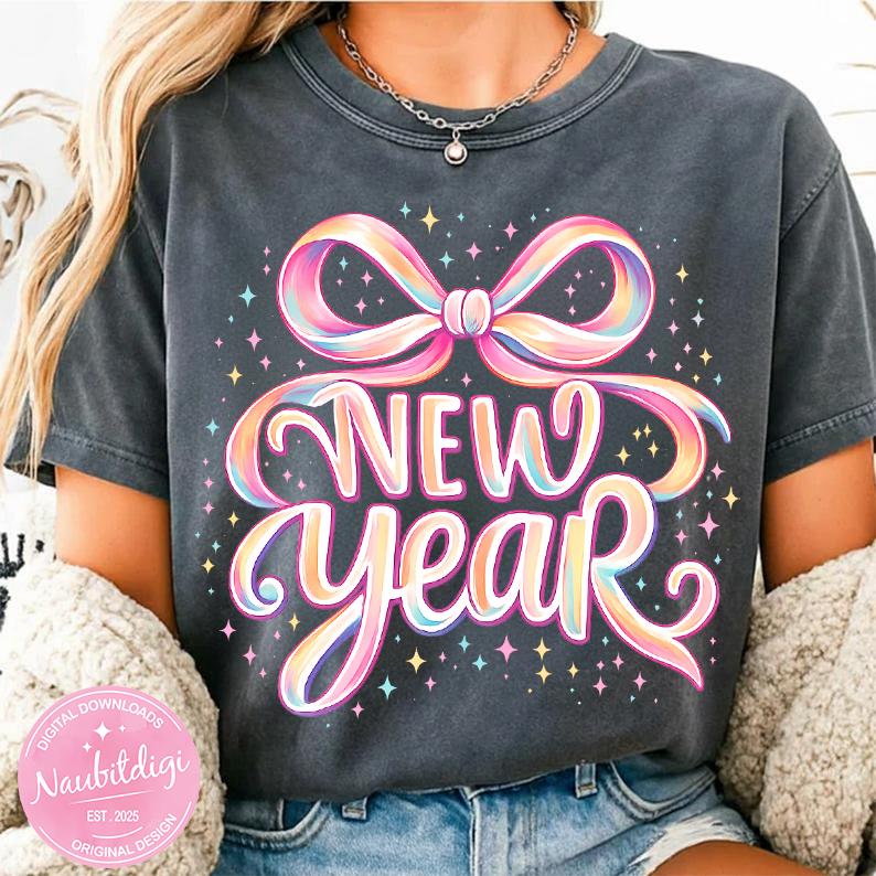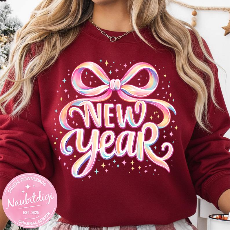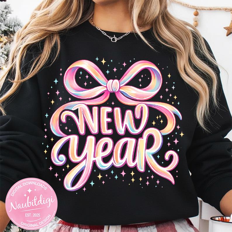 New Year 2026 Splatter PNG, Coquette Bow New Year Design, Trendy NYE Sublimation, Happy New Year Eve 2026 Celebration PNG