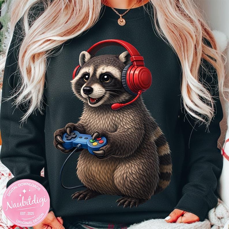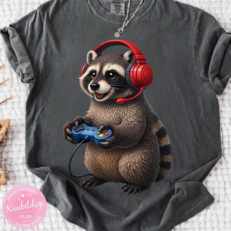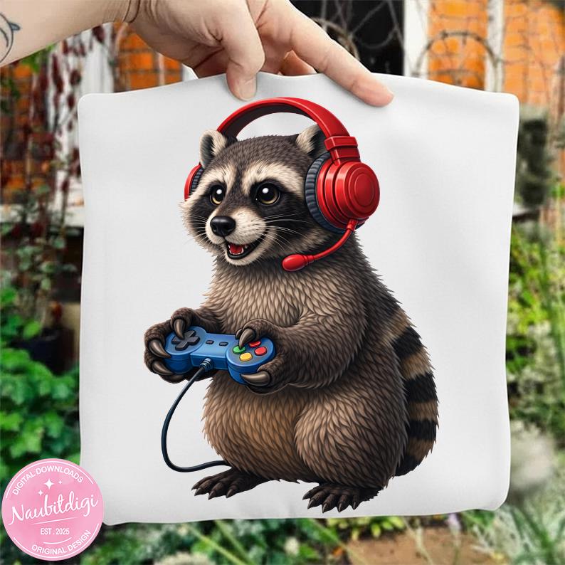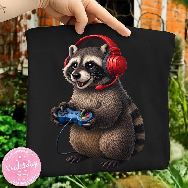 Raccoon Gamer PNG, Gaming Raccoon with Headset, Cute Gamer Animal PNG, Gaming Controller PNG, Funny Gamer Clipart, Sublimation Png