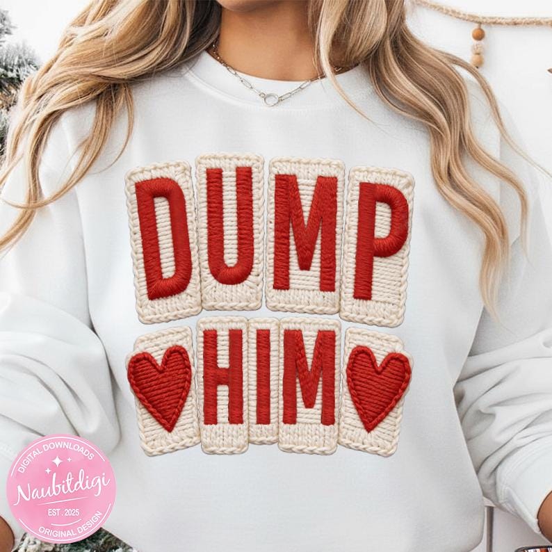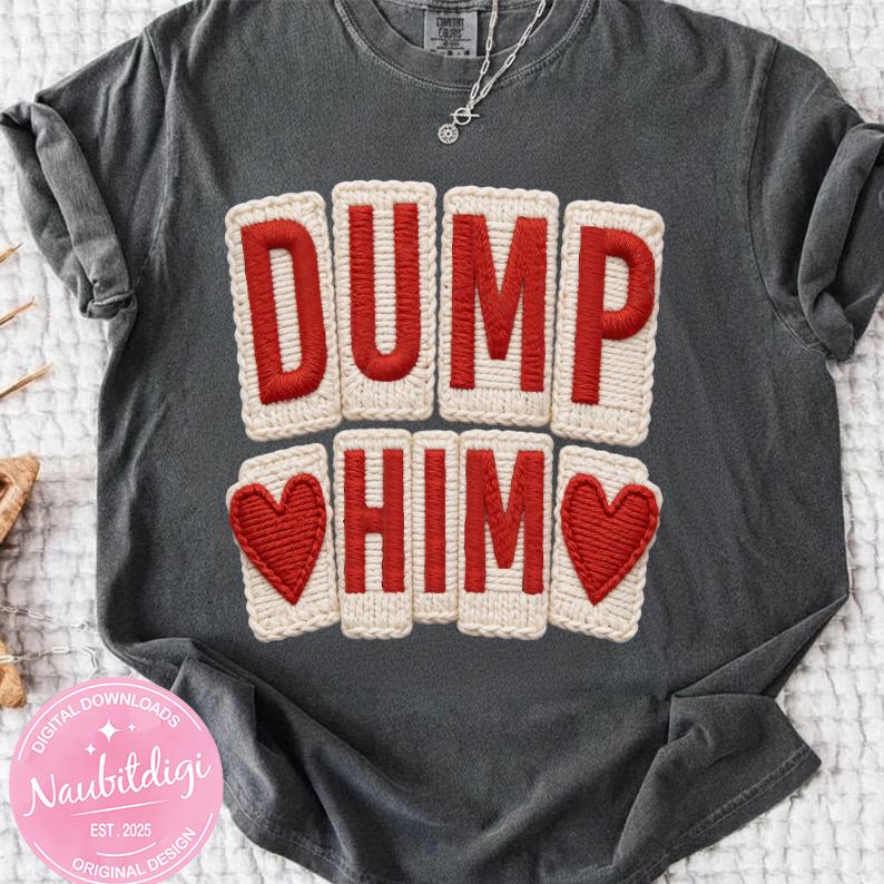 Dump Him PNG – Funny Anti Valentine Crochet Design, Sassy Breakup Shirt, Embroidered Style Valentine Sublimation
