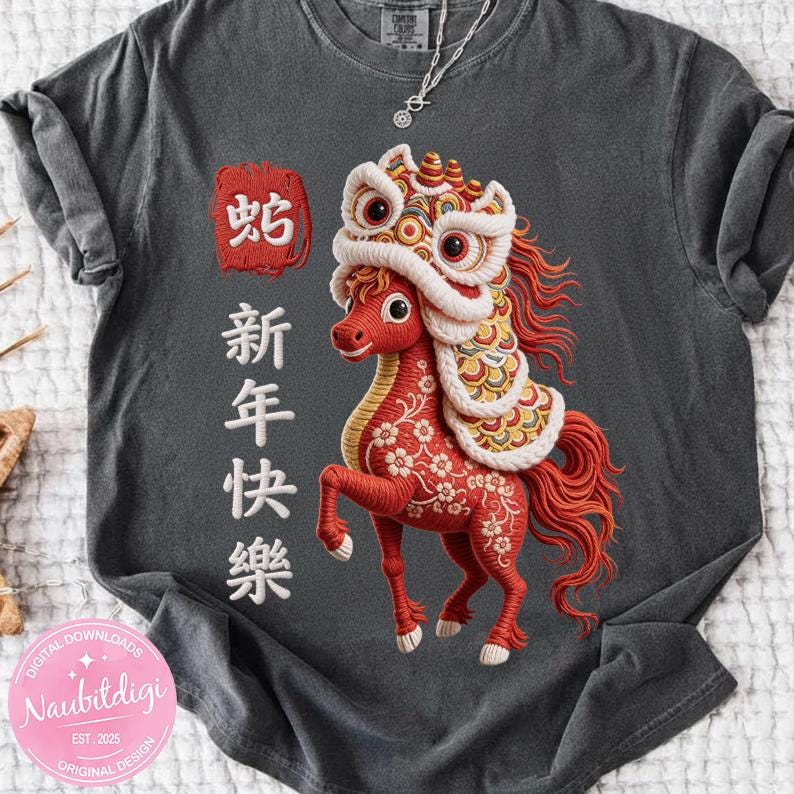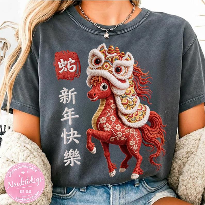 Celebrate prosperity, strength, and good fortune with this Chinese New Year Horse PNG design, inspired by traditional Lunar New Year symbolism and crafted in a rich embroidered-style illustration.