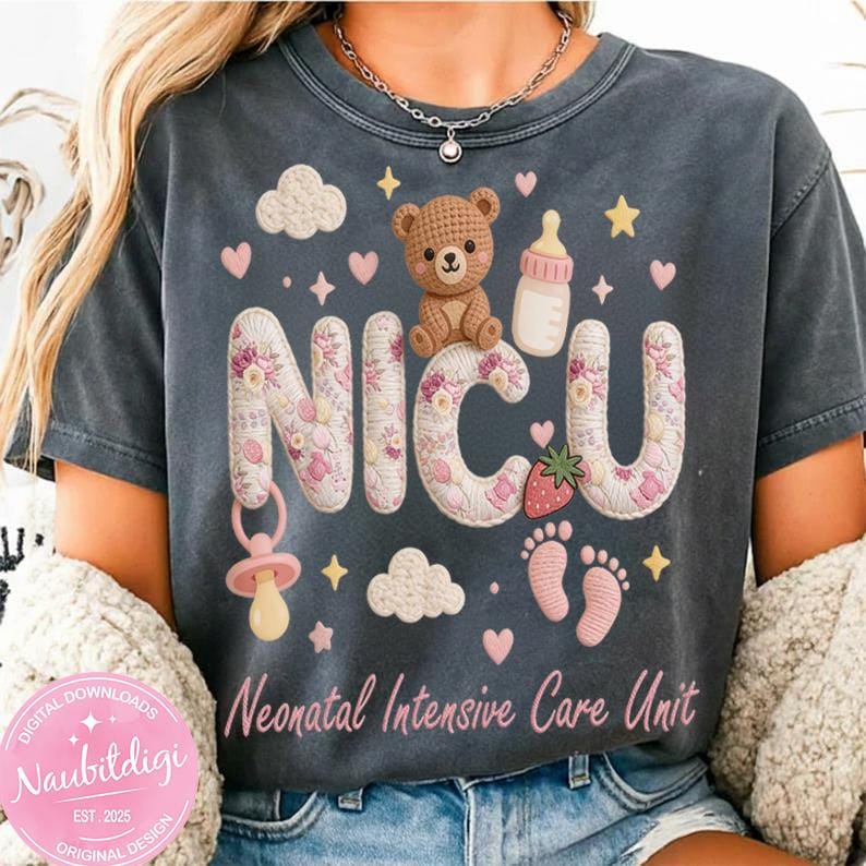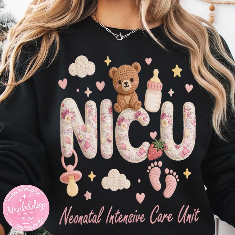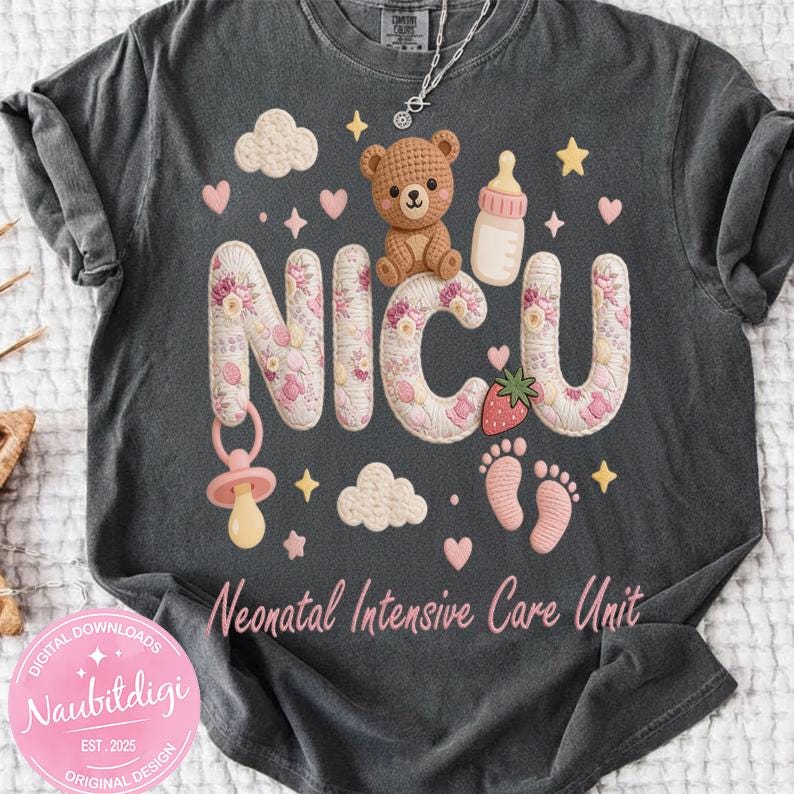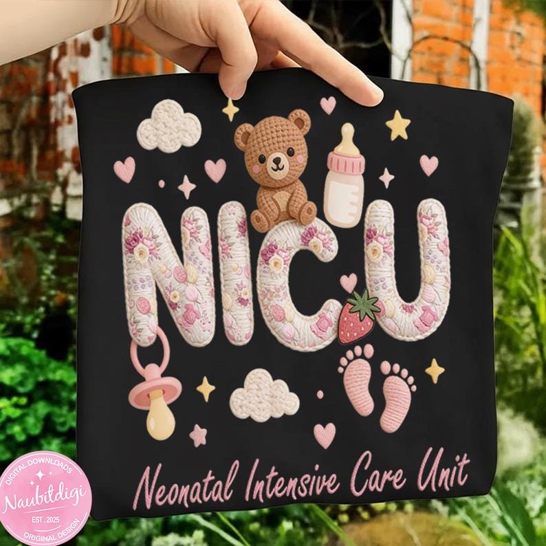 NICU Neonatal Intensive Care Unit Png, Faux Embroidery Nurse Design, NICU Nurse Shirt Png, Baby NICU Awareness Digital Download