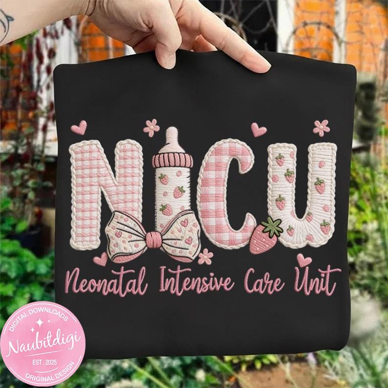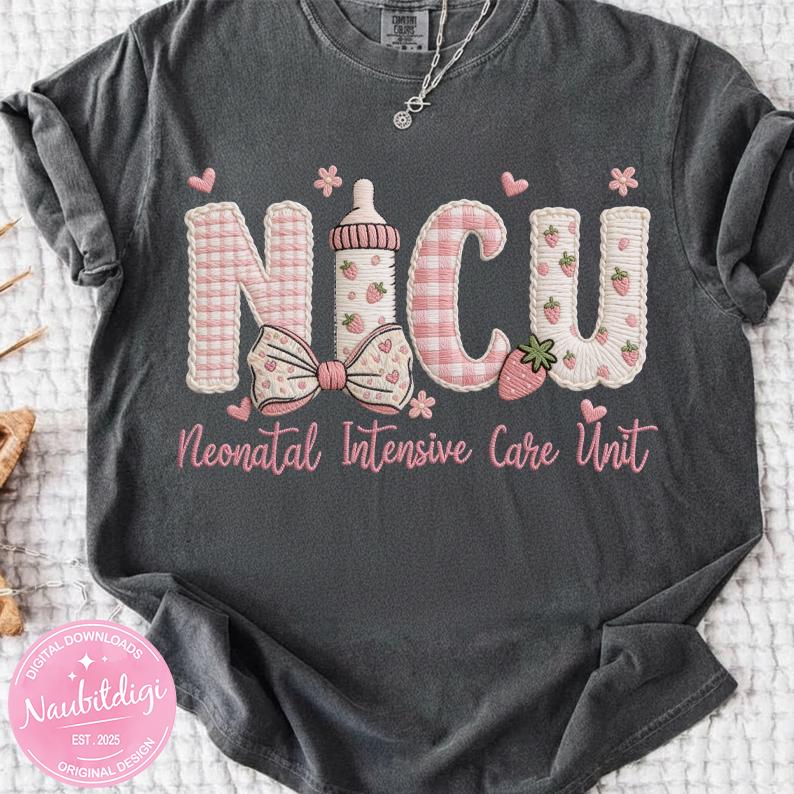NICU Neonatal Intensive Care Unit Png, Faux Embroidery Nurse Design, NICU Nurse Shirt Png, Baby NICU Awareness Digital Download