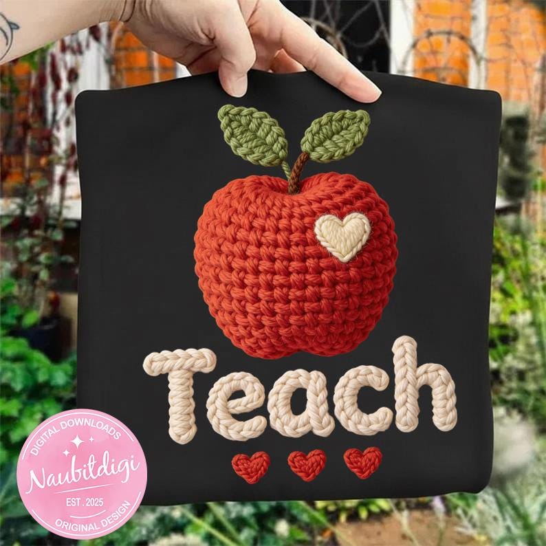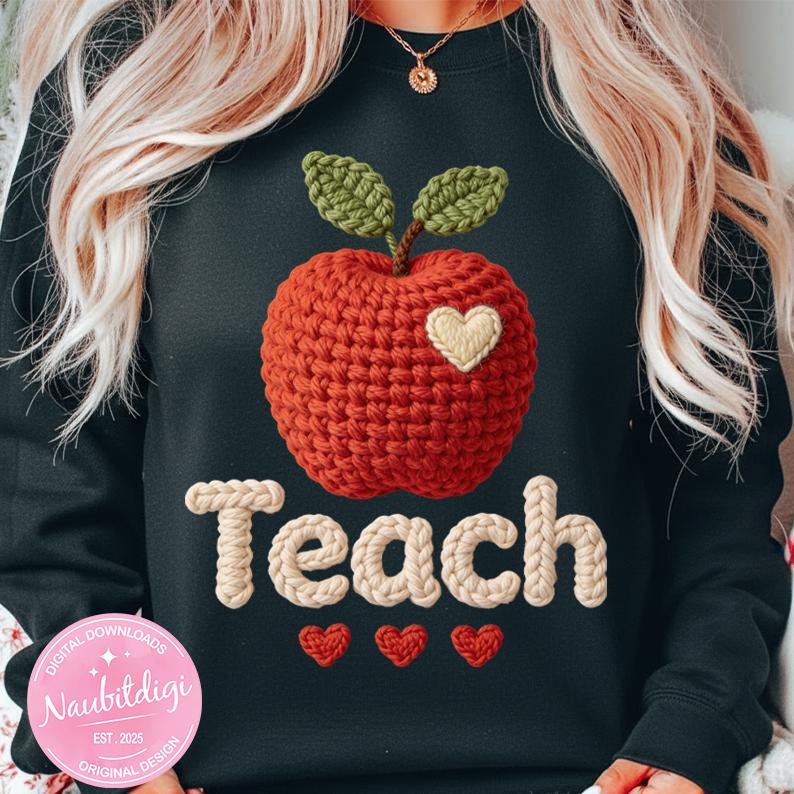 Cheer on your classroom with this Teach PNG in cozy style featuring a vintage apple and hearts. High-resolution transparent PNG perfect for sublimation or DTF on teacher shirts for back to school, meet-the-teacher, or teacher appreciation.