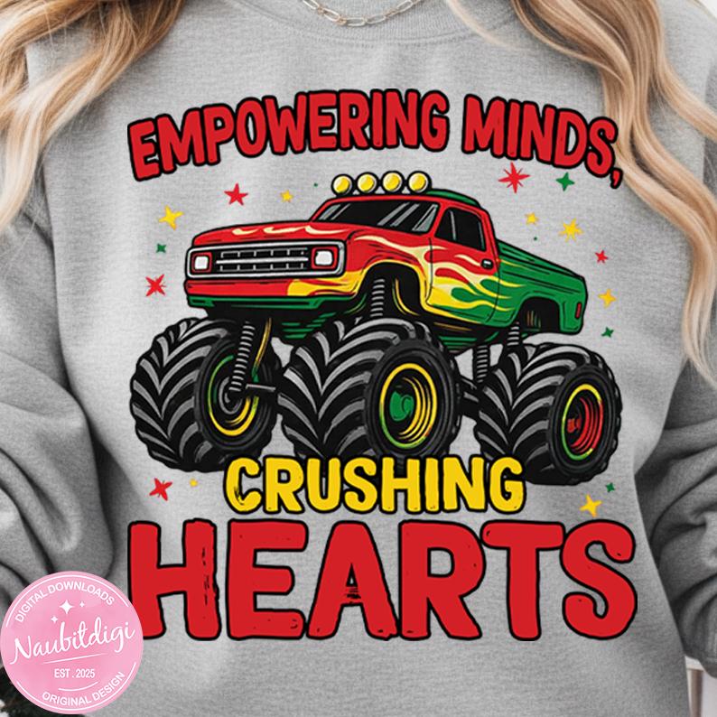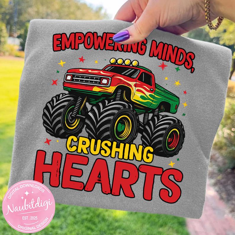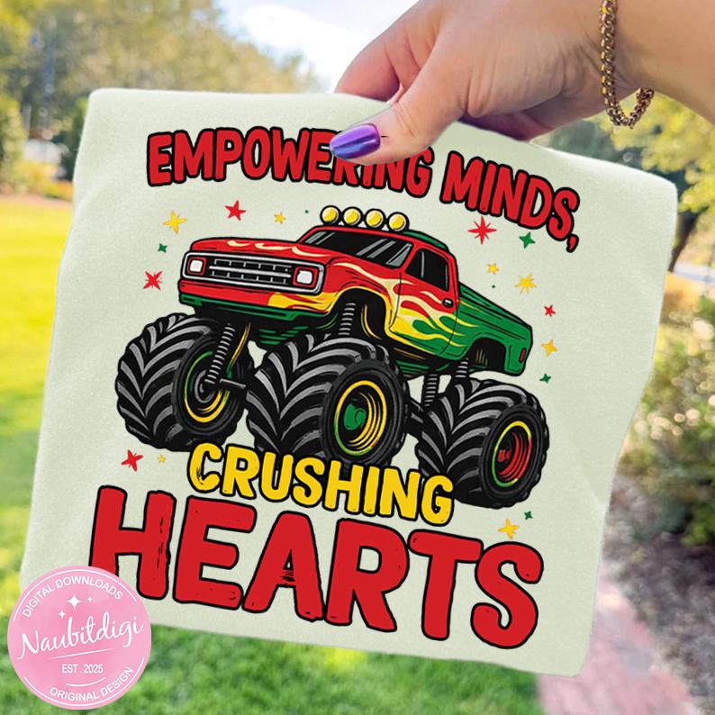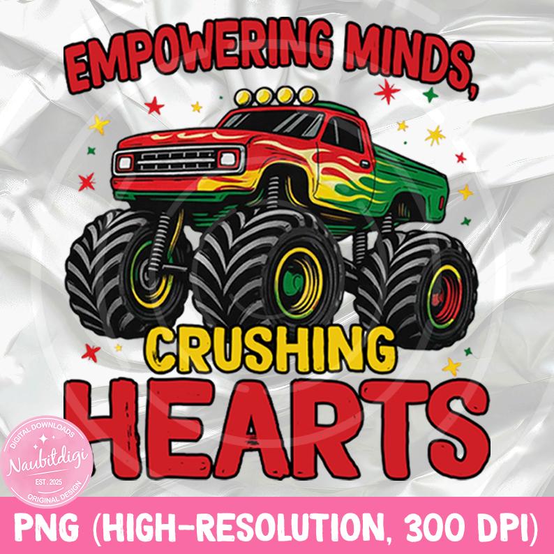 Black History Month Monster Truck PNG Empowering Minds Crushing Hearts Afrocentric Art Excellence Shirt Graphic Cultural Pride Sublimation
