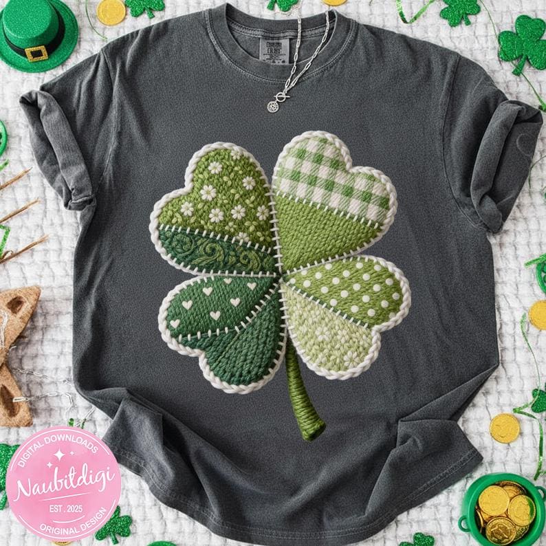 Bring a cozy, handmade feel to your St. Patrick’s Day creations with this Lucky Clover PNG digital design. Featuring a charming patchwork-style four-leaf clover with faux embroidery textures, this design is perfect for festive apparel, gifts, and seasonal décor.