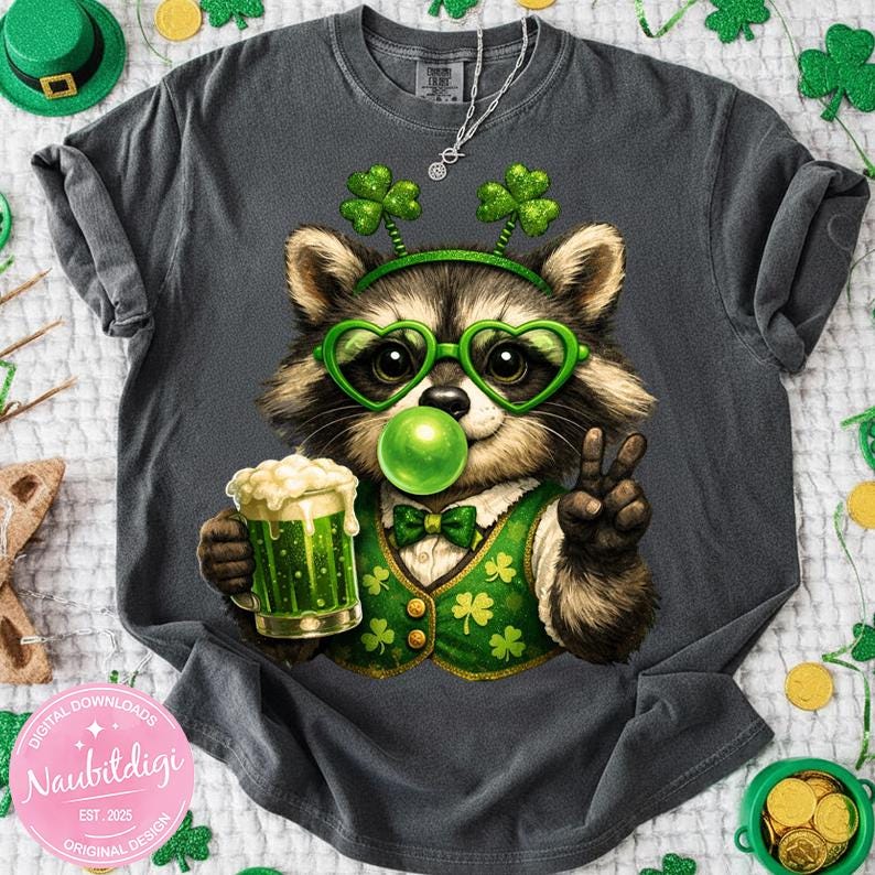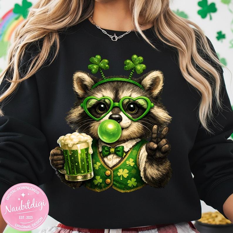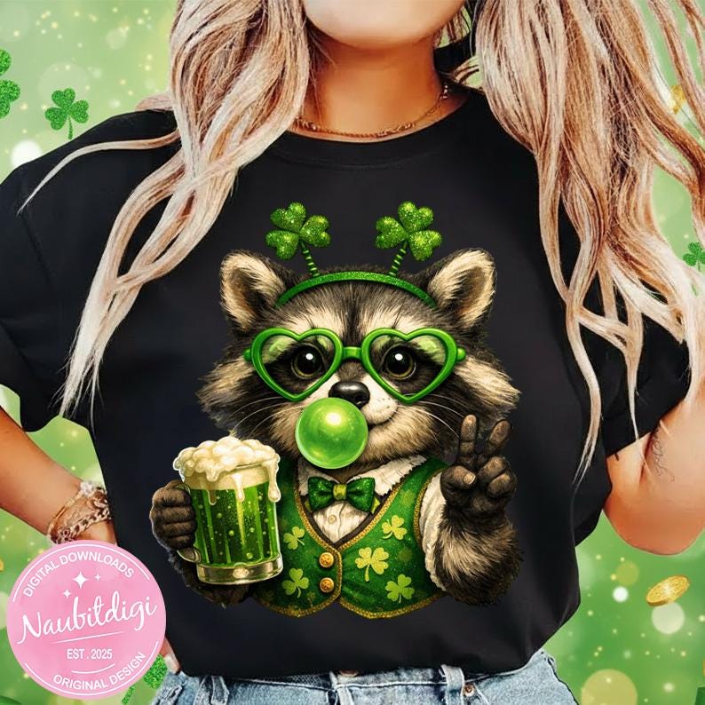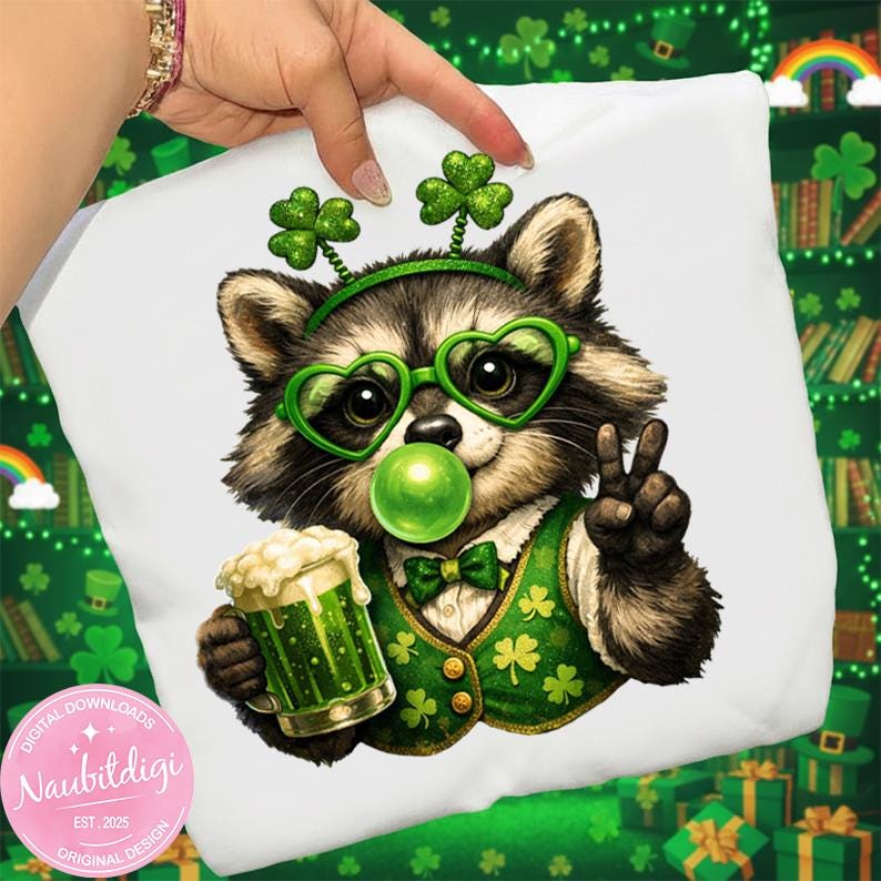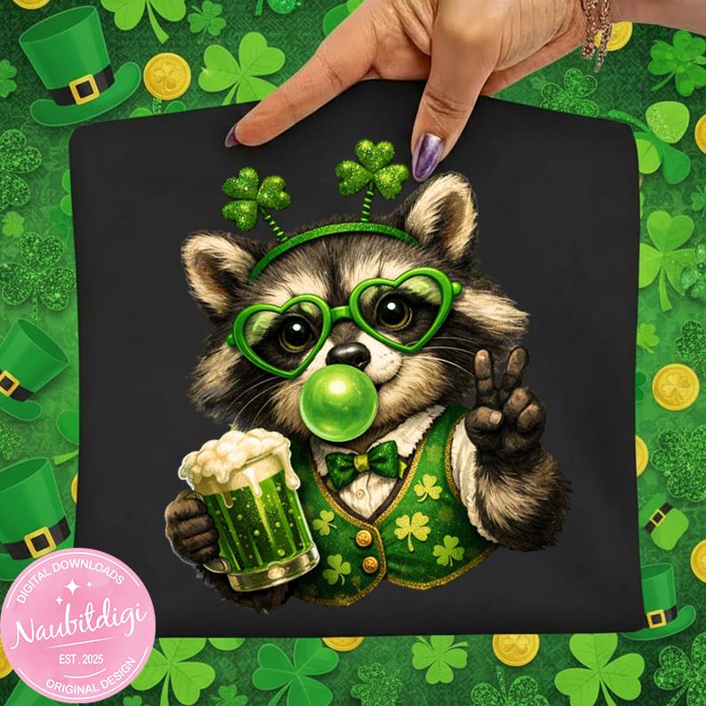 🍀 St Patrick’s Day Raccoon PNG – Digital Download