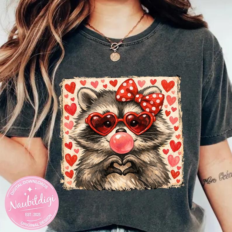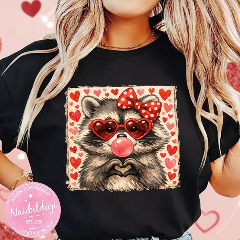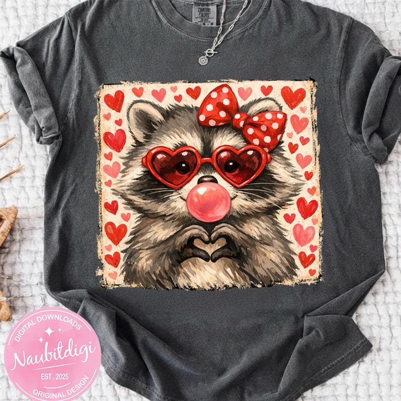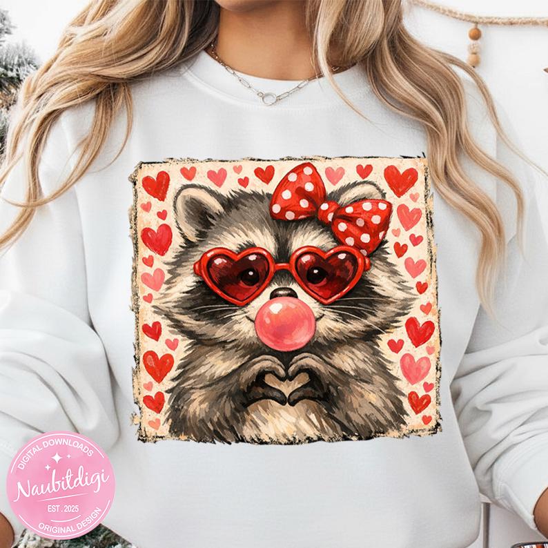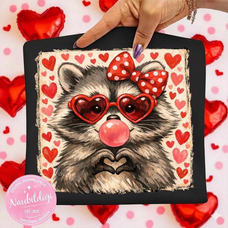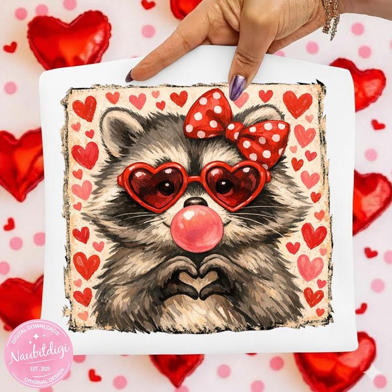Add a touch of charm and love to your Valentine creations with this adorable raccoon design! Featuring heart-shaped glasses and a sweet, playful style, this high-quality PNG is perfect for apparel, gifts, and creative projects.