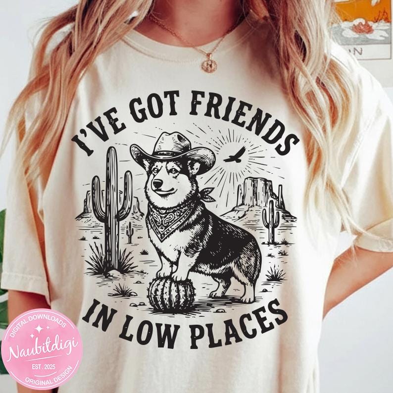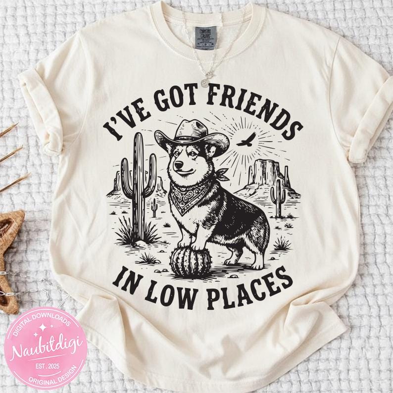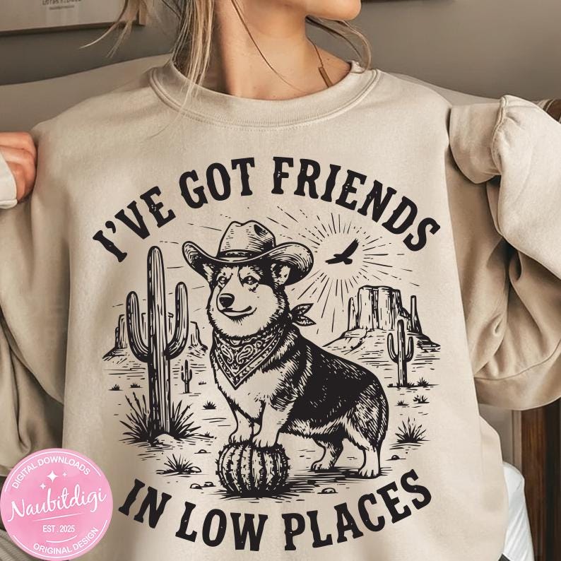 Funny Corgi PNG, Corgi Lover Gift, Retro Corgi Mom Design, Dog Graphic, I've Got Friends in Low Places Corgi, Instant Download