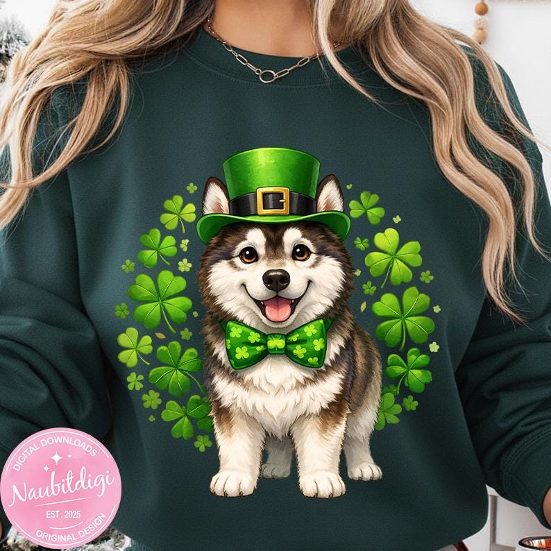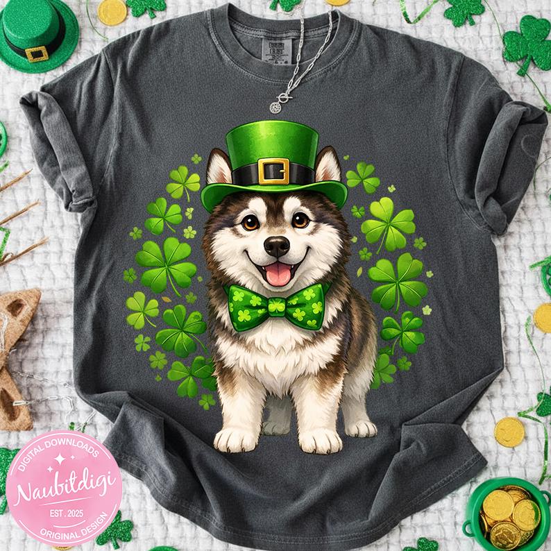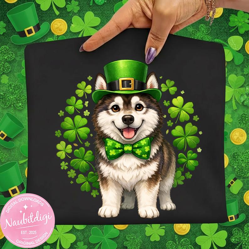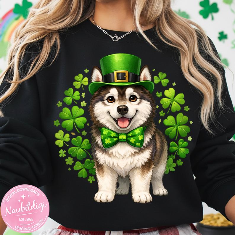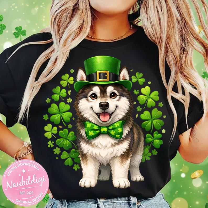 St Patricks Day Husky PNG, Siberian Husky Design, Cute Husky Mom Png, Husky Dog Holiday Tee, Saint Paddy Husky Mom Gift, Dog Lover Gift