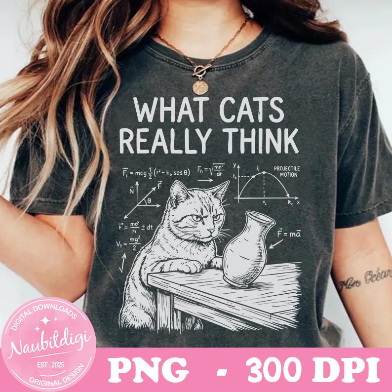 Cat Meme PNG: Funny Cat Physics Humor What Cats Really Think png Science Humor Digital Art (Digital Download)