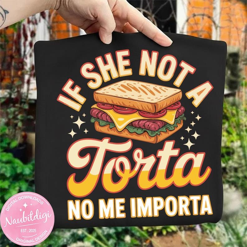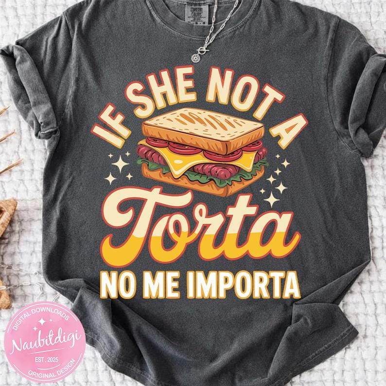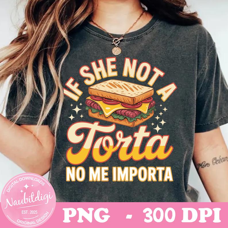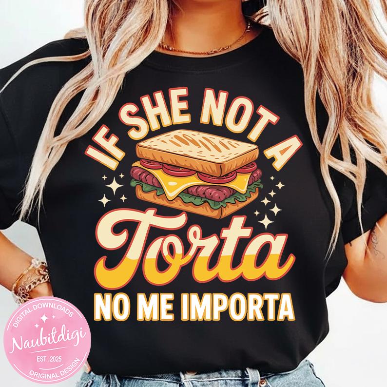 Add bold humor and foodie attitude to your apparel with this fun “If She Not a Torta No Me Importa” digital design 😄