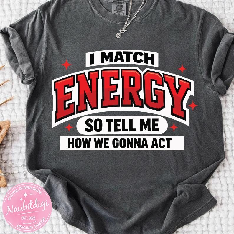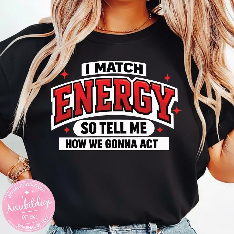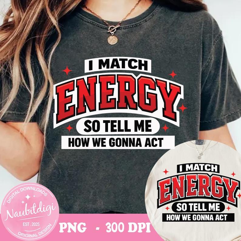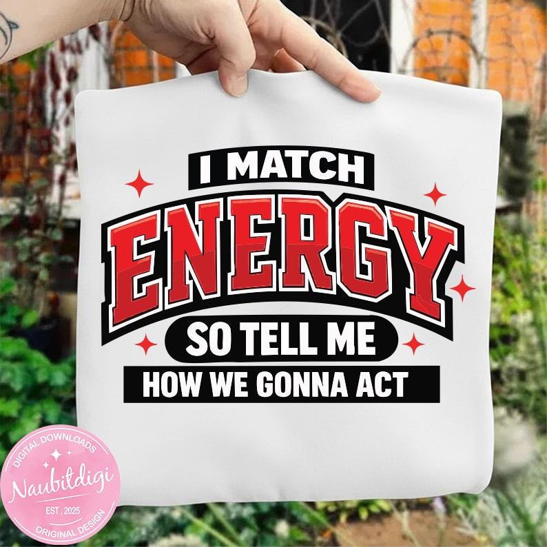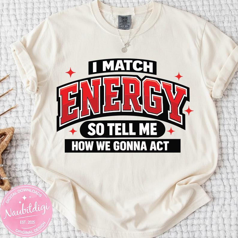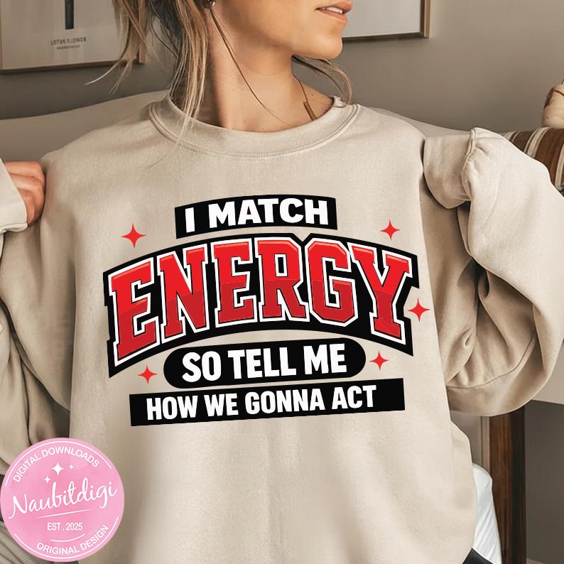 I Match Energy PNG, Bold Varsity Quote PNG, Streetwear Typography Design, Attitude Saying Sublimation File, Trendy Shirt PNG Download