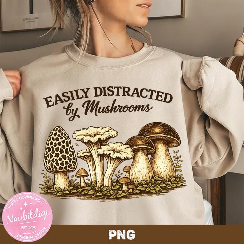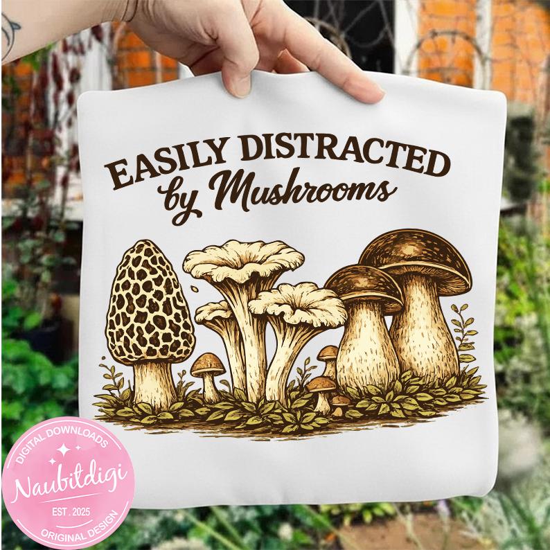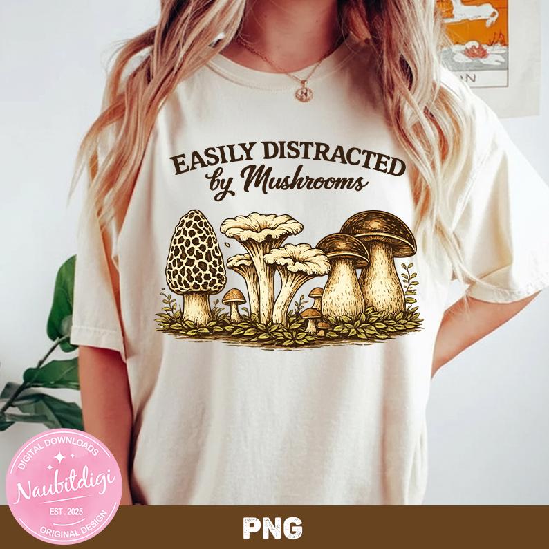 Easily Distracted by Mushrooms Png,Funny Mushroom Quote, Nature Lover Shirt Design Digital Download