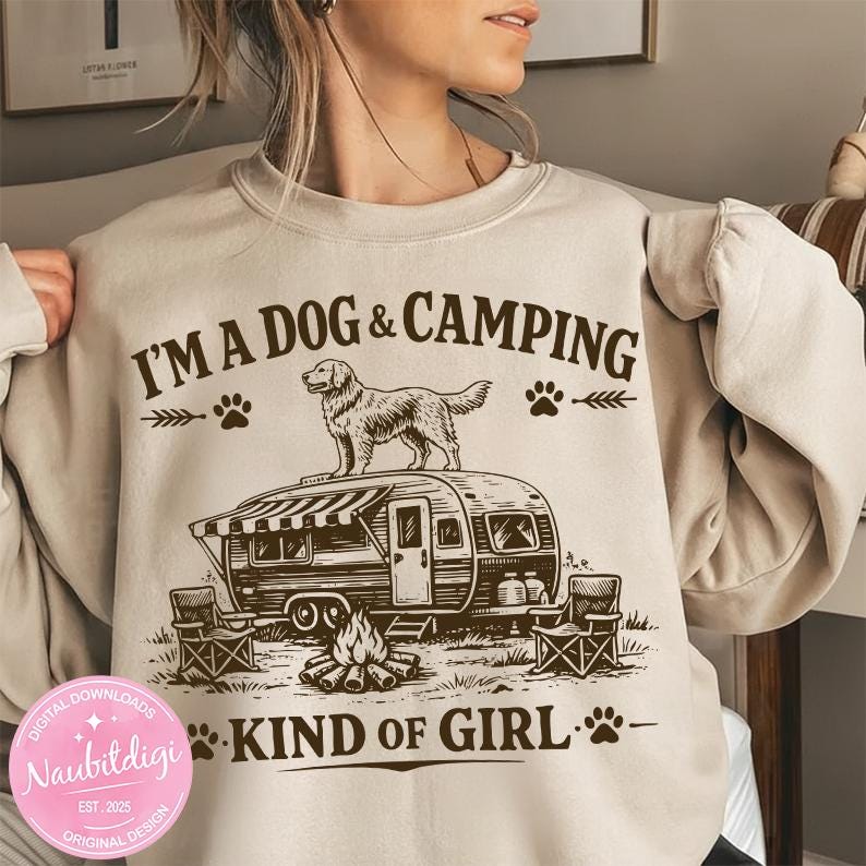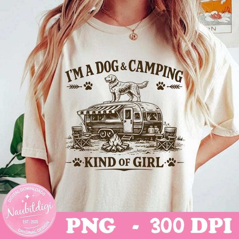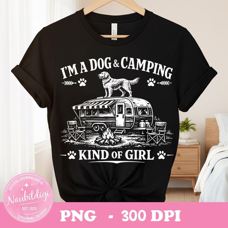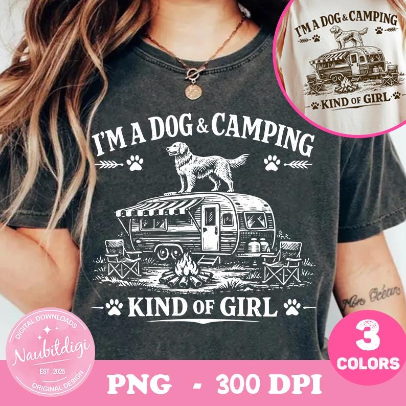 Dog Camping PNG, I'm A Dog & Camping Kind of Girl Png, Camping Dog Lover Shirt Design, Retro Camper PNG, Sublimation File, Digital download