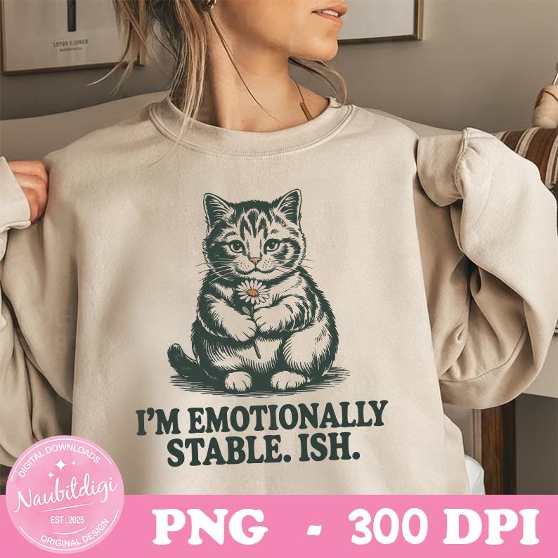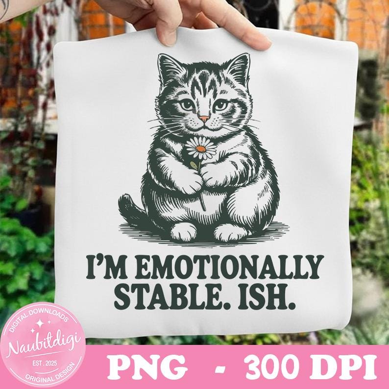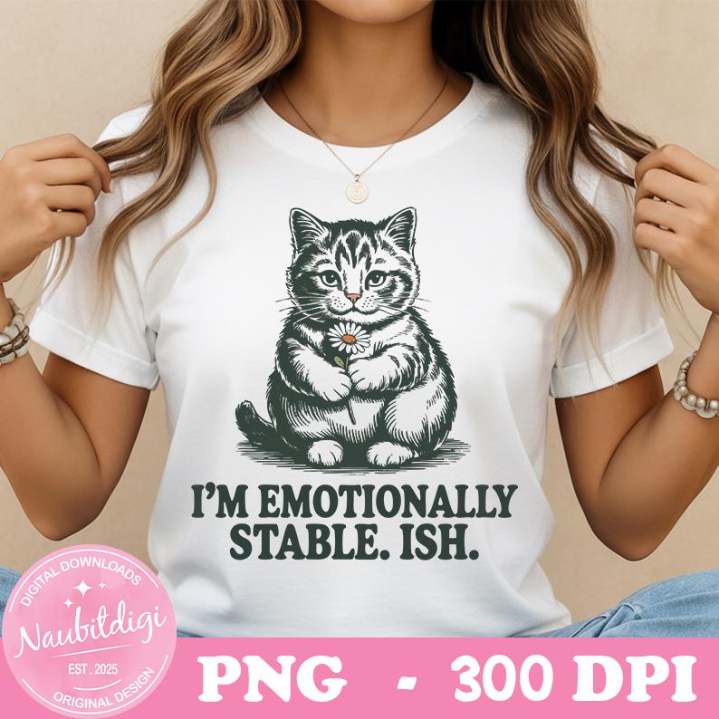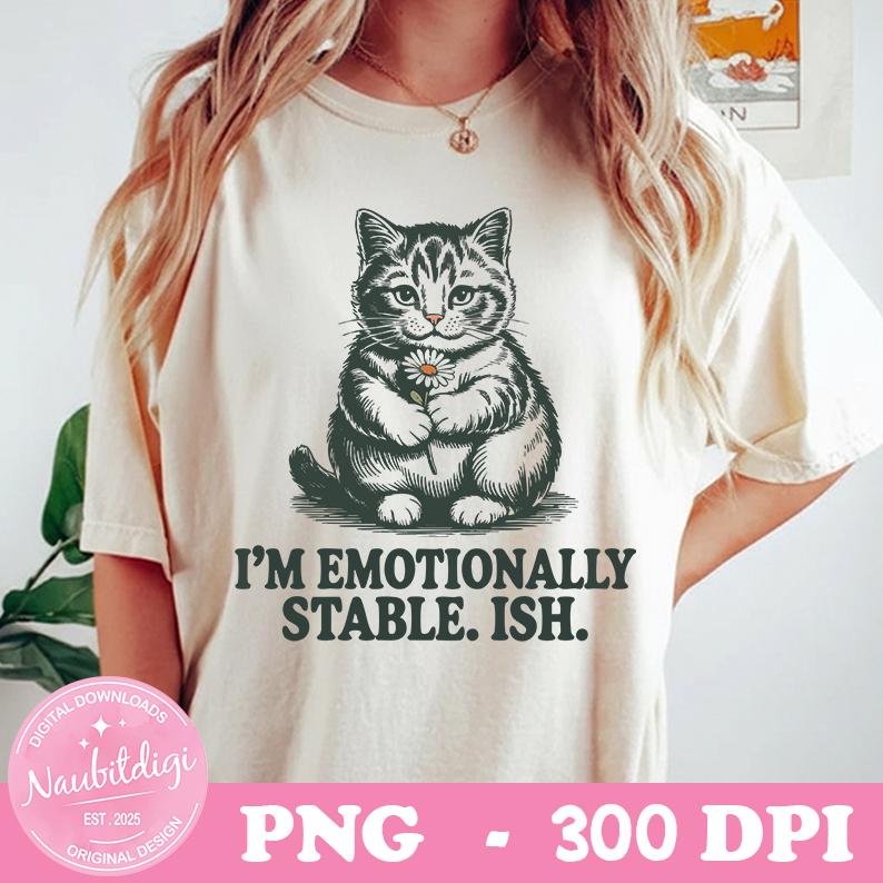 Funny Mental Health Cat PNG – Emotionally Stable Ish, Self Care Quote Sublimation Design (Digital download)