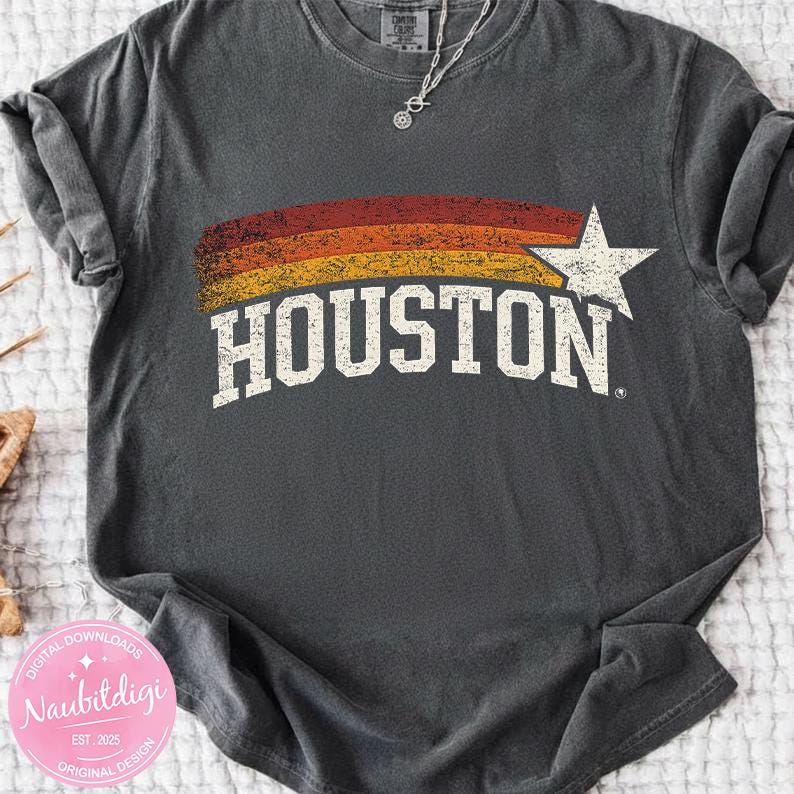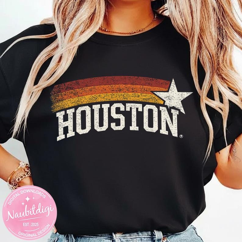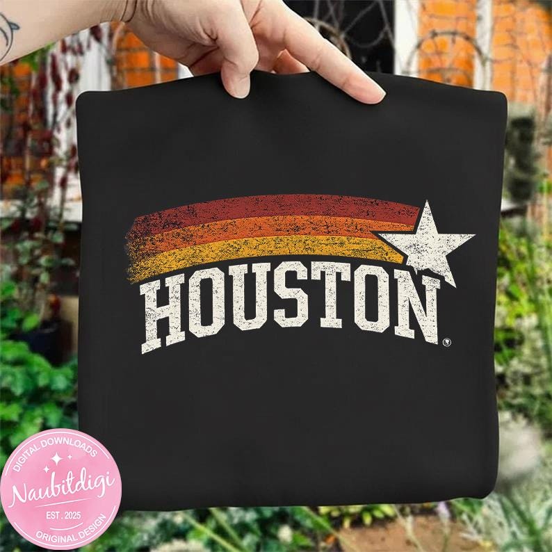 Vintage Houston Texas PNG Digital Design, Retro Houston TX Star Stripes Graphic, Strong Southern City Pride Aesthetic Digital Download
