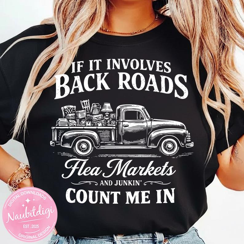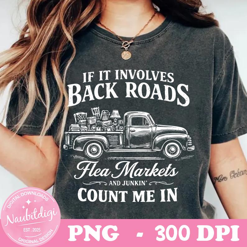 If It Involves Back Roads Flea Markets And Junkin' Count Me In PNG SVG, Junkin Queen svg, Thrifting Antiques svg, Digital Download
