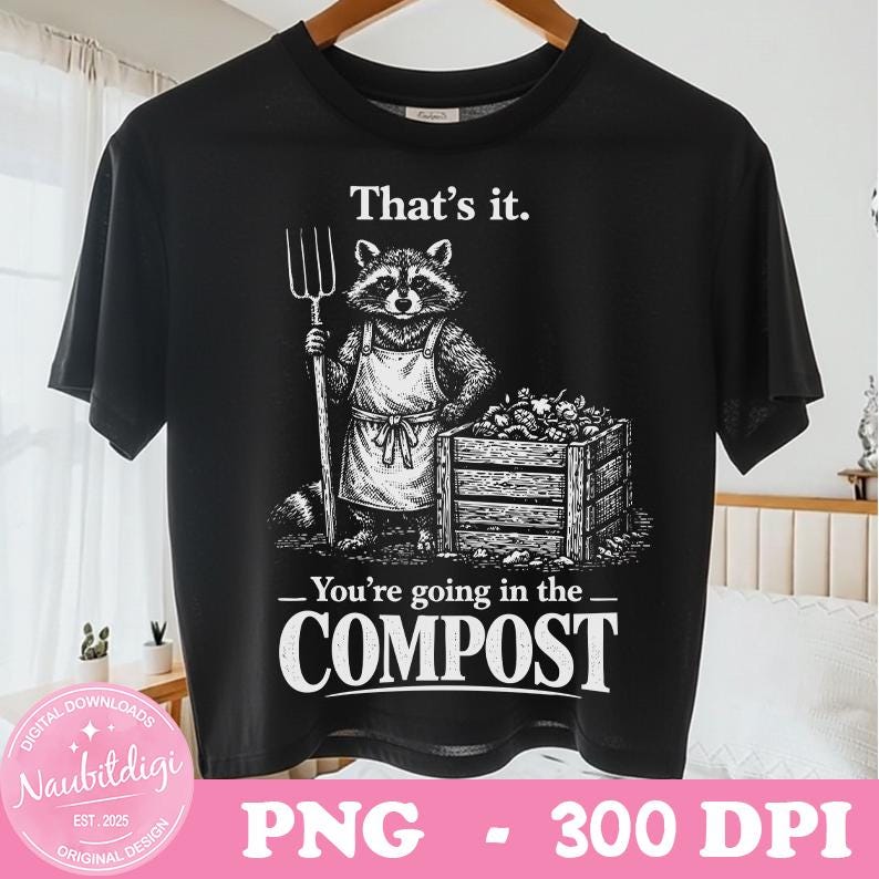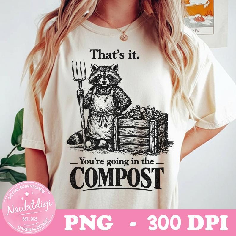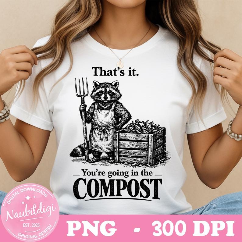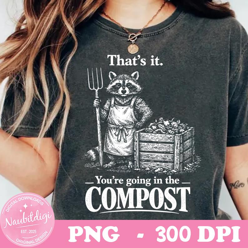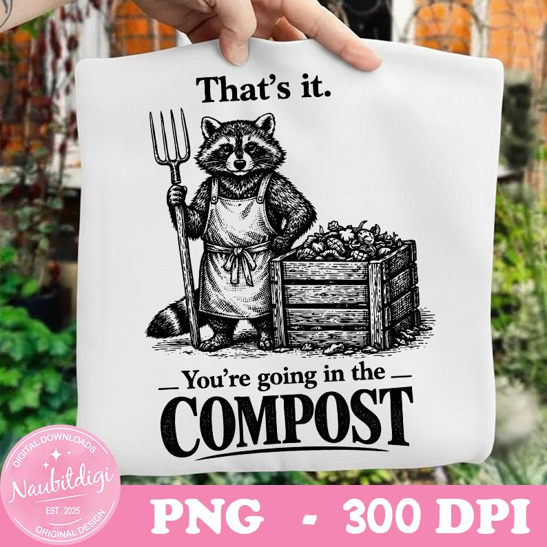 That's It You're Going in The Compost Raccoon Gardening PNG, Sarcastic Garden Quote, Trash Panda Humor, Gardening Meme PNG, Digital Downlad